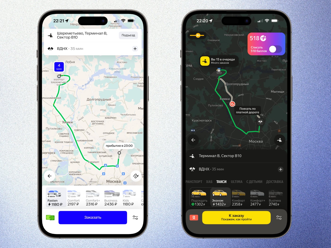 Несмотря на схожесть тарифов с Яндекс Go, цены отличаются.