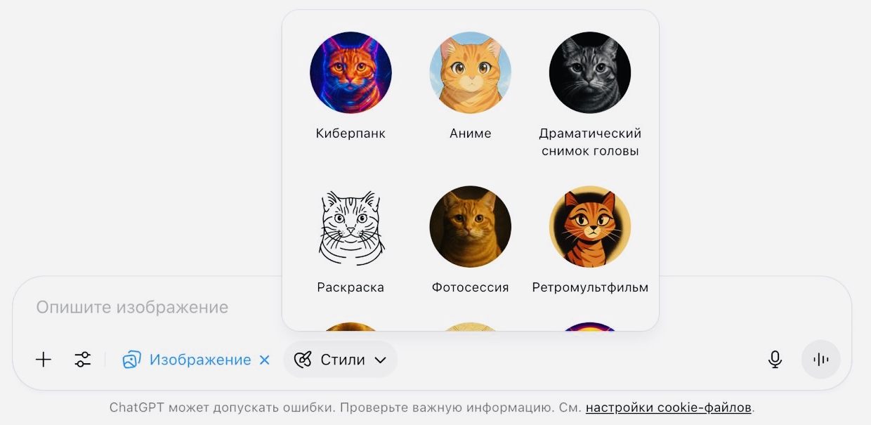 OpenAI обновила ChatGPT, добавив новую функцию «Стили», которая упрощает создание изображений без необходимости составления сложных текстовых запросов.