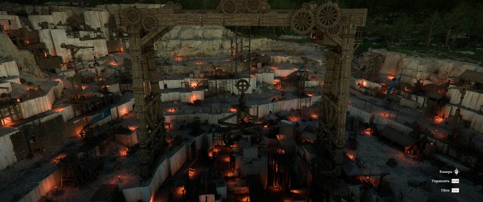 Плюс здесь очень приятно то, что мир умеет отвечать не только квестами, но и системами. На каменоломне можно устраивать натуральный бардак с объектами окружения: кидать ящики, использовать бочки, сносить конструкции, да даже играться с грузовым краном (совершенно неожиданно, конечно, для средневековья).