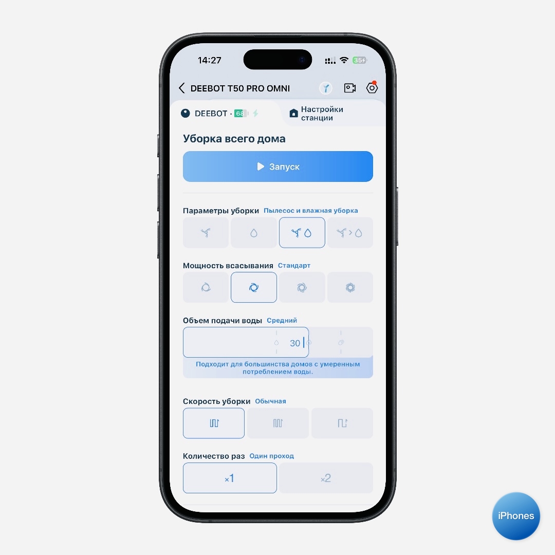 Через приложение можно настроить карту дома, задать зоны уборки, установить виртуальные стены, чтобы робот не лез, куда не надо, и даже выбрать режимы уборки. Wi-Fi работает на 2.4 ГГц или смешанных сетях 2.4/5 ГГц.