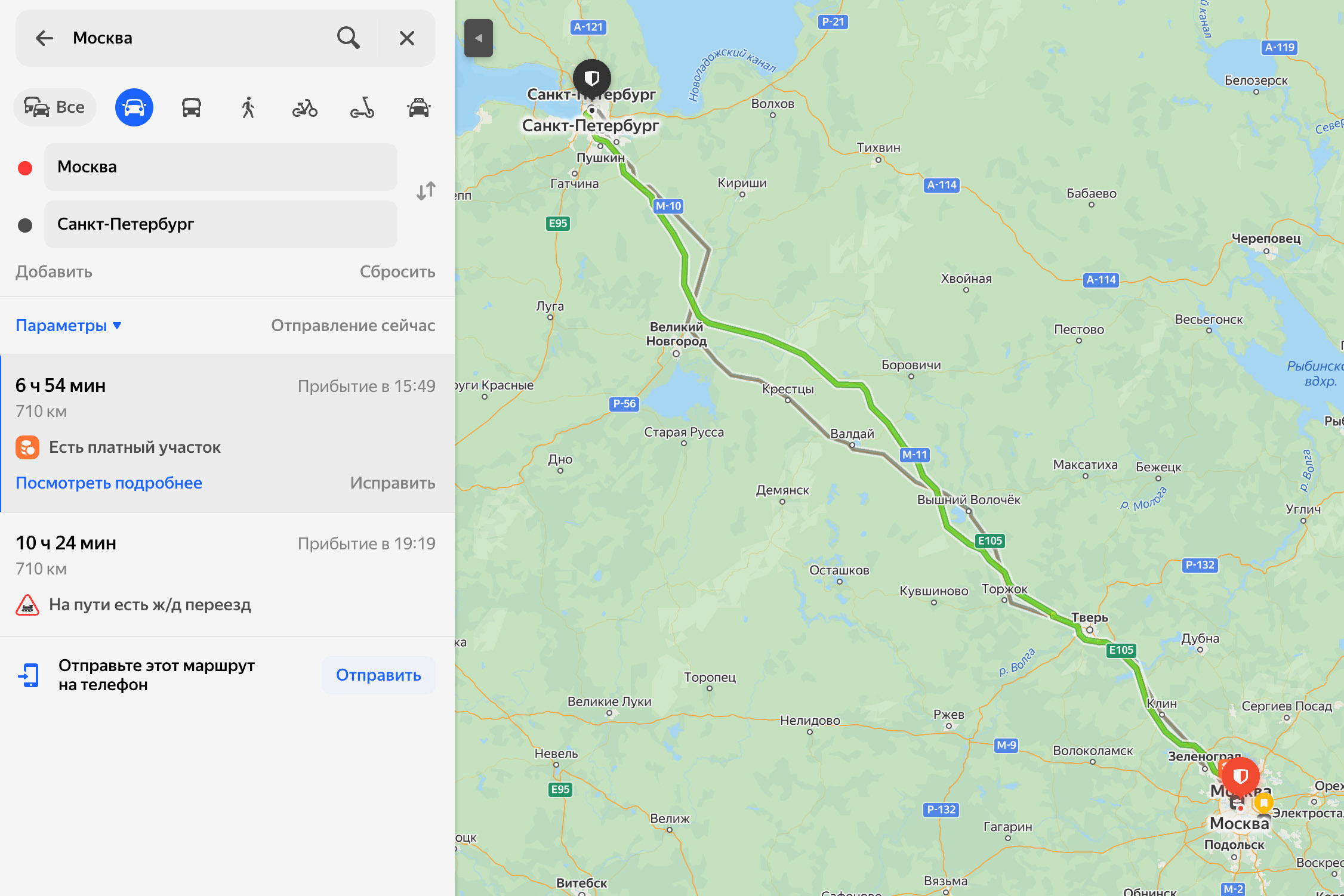 Стандартный вид для путешественника из Москвы в Санкт-Петербург.