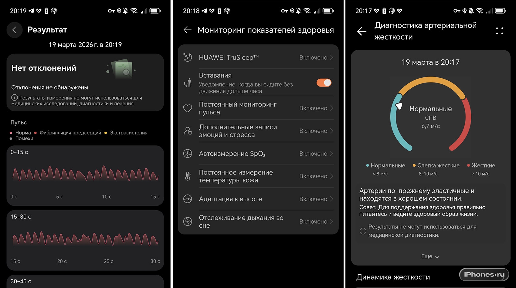 Разрешения 466×466 точек с головой хватает для чёткости мелких шрифтов, беговых графиков, иконок интерфейса. За мониторинг физических показателей отвечает новая система HUAWEI TruSense System с улучшенной архитектурой светодиодов для минимизации артефактов при движении.