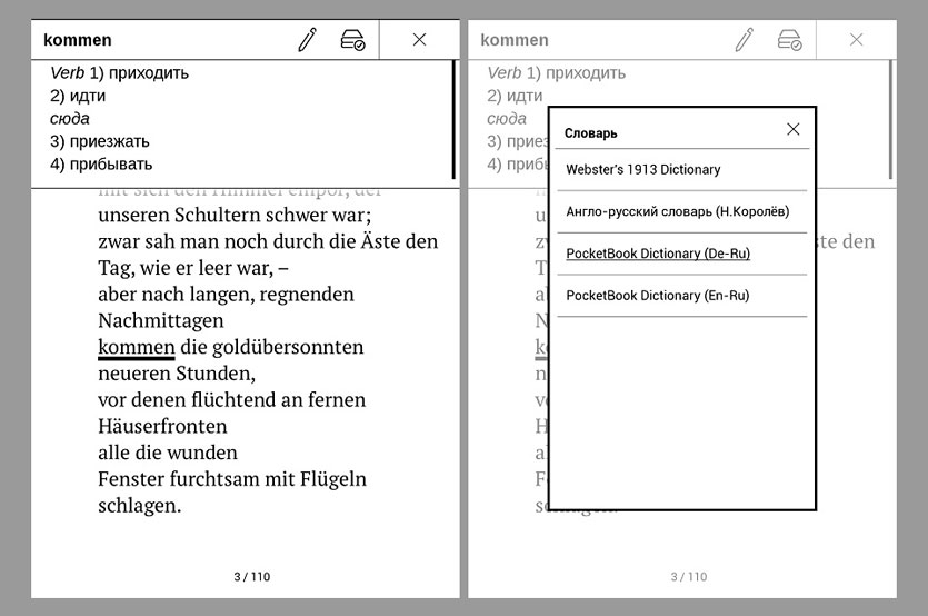 Наличие встроенного словаря позволяет неплохо подтянуть иностранную лексику во время чтения.