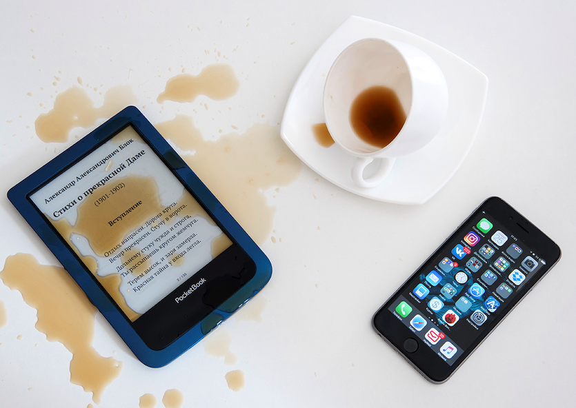 Отсутствии водозащиты. Да, ее нет. За водозащитой добро пожаловать к PocketBook 641 Aqua 2 (на фото выше). Это единственный на данный момент герметичный водозащищенный ридер, соответствующий стандарту IP57.