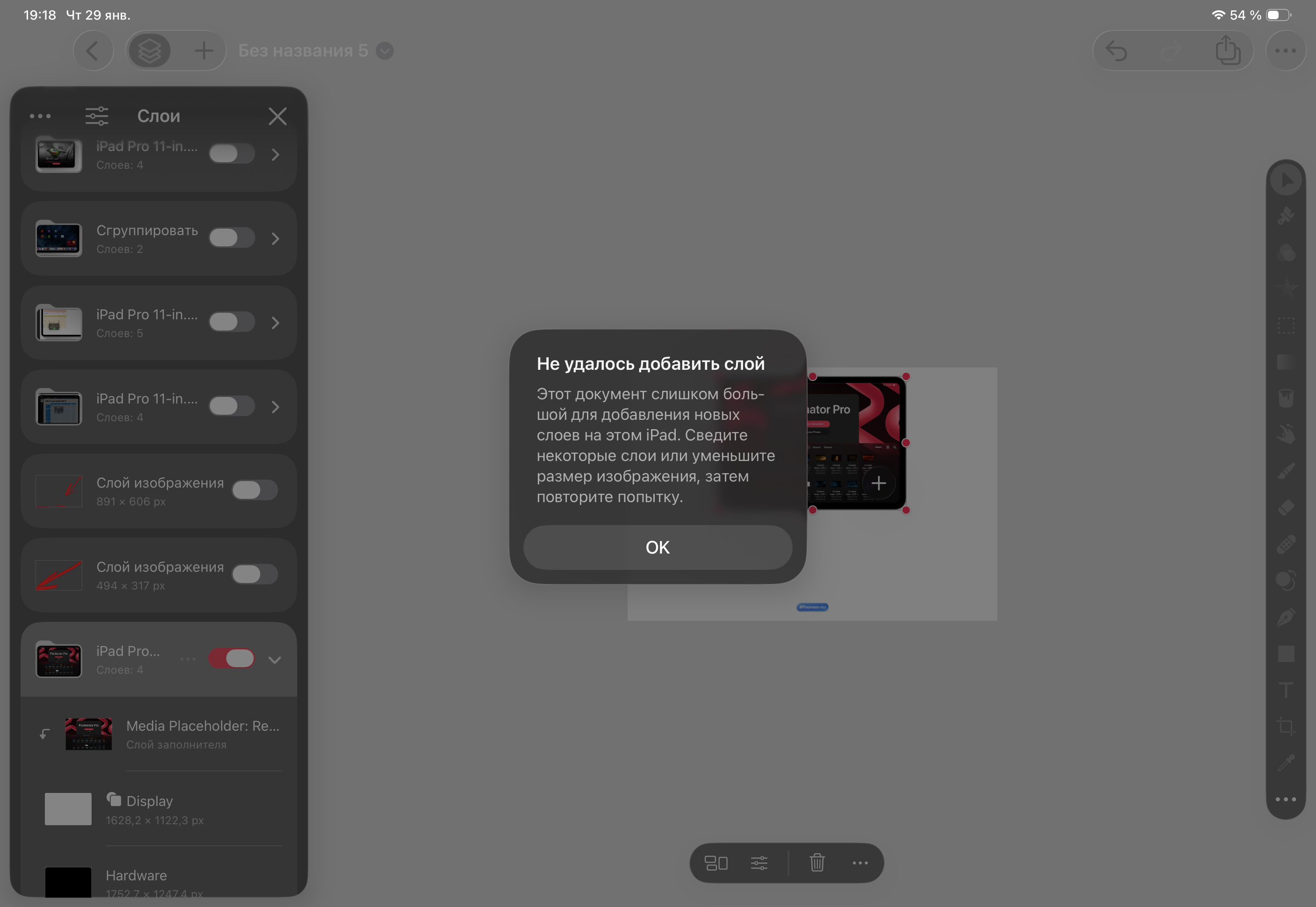 - Программа может сообщить о слишком большом количестве слоёв или размере файла. На Mac такого не встречал