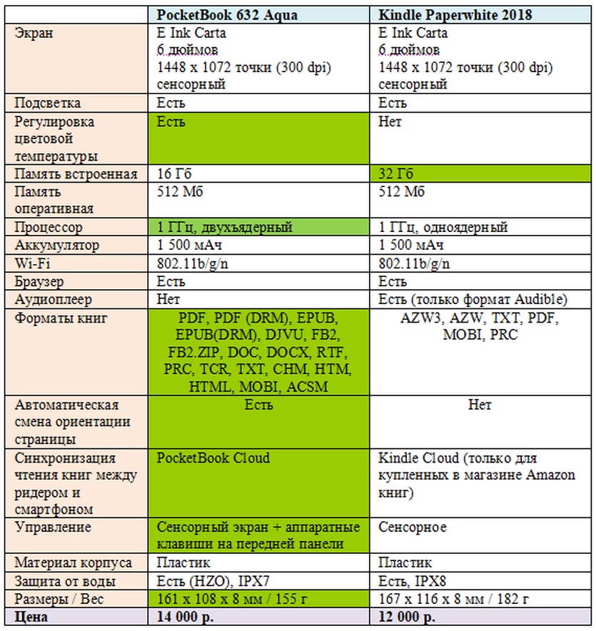 Но PocketBook 632 Aqua стоит 14 000 рублей, а Kindle Paperwhite 2018 – 12 000 рублей, всего на 2 000 рублей дешевле. Тогда как речь уже о том порядке сумм, когда «пару тысяч» уже можно считать погрешностью.