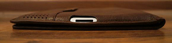 Да, отсутствие магнитов для фиксации крышки в открытом и закрытом состоянии это есть большой минус. А еще не совсем удачно получается вырез для наушников: если смотреть сверху, то как раз над гнездом проходит шов обложки и чтобы воткнуть штекер, нужно одной рукой отгибать шов обложки, другой вставлять. С наушниками обложка спереди в том месте оттопыревается и появляются складочки, со временем спереди в левом верхнем углу кожа становится какой-то помятой. а на самом шве сзади, где он соприкасается со штекером наушников появилась потертость.