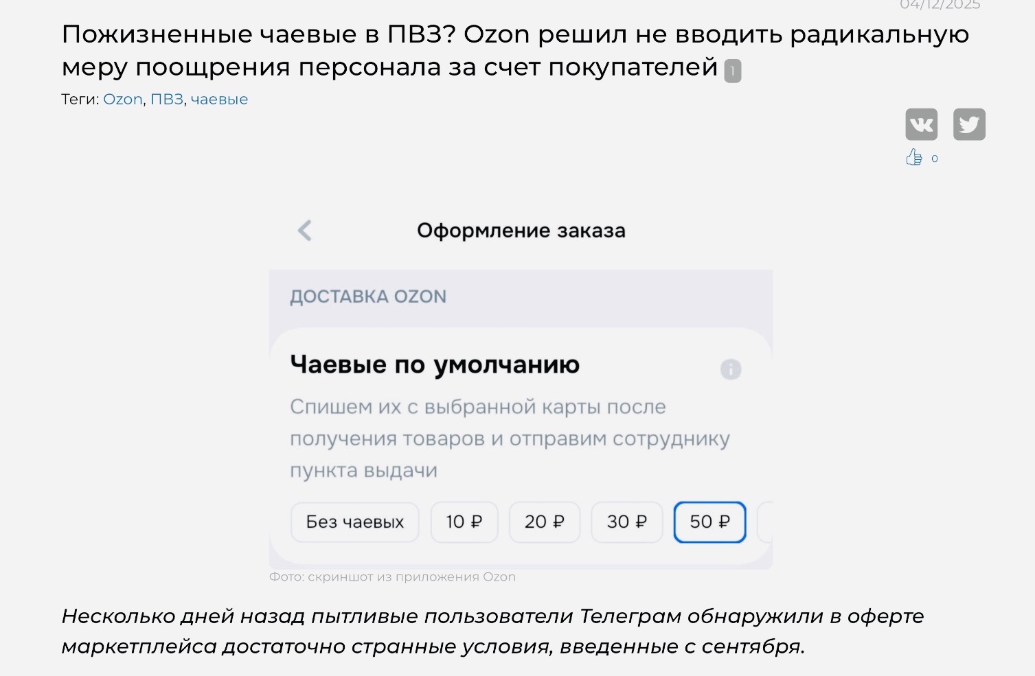Механика чаевых на Ozon подозрительно напоминает подписку.