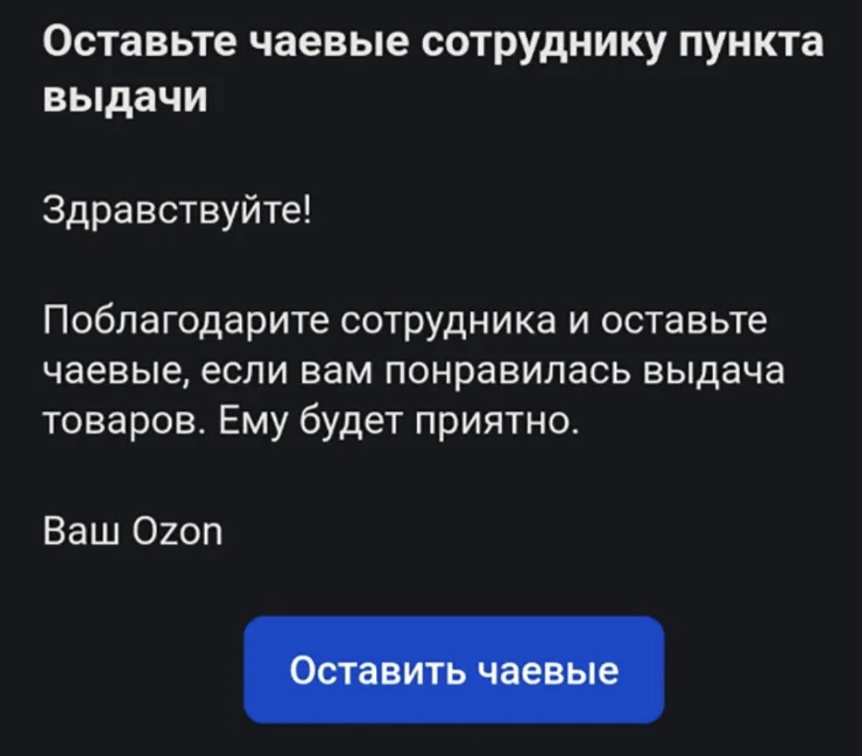 Вывод. Платить или не платить чаевые в OZON