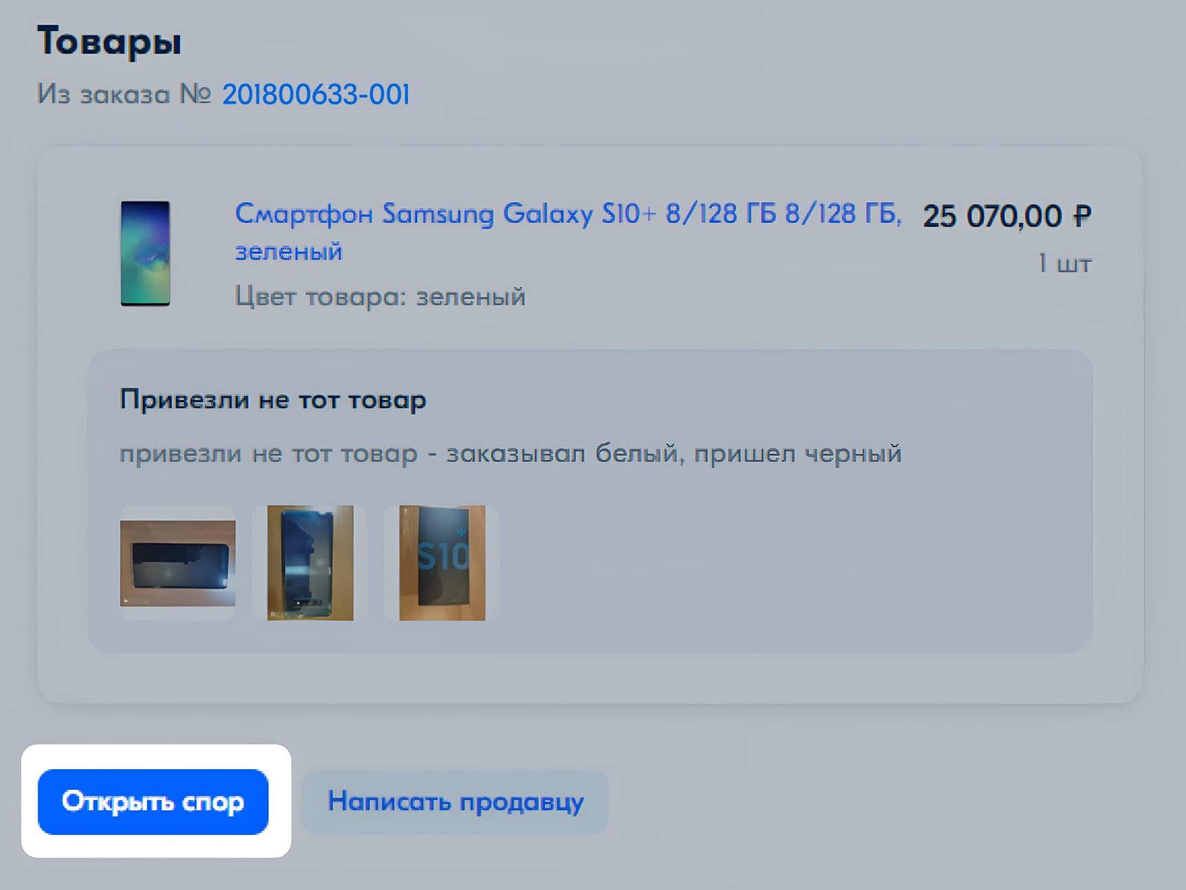 В качестве доказательств могут использоваться трек-номер и скриншоты переписки. - Открыть спор можно под заявкой на возврат товара в личном кабинете Ozon.