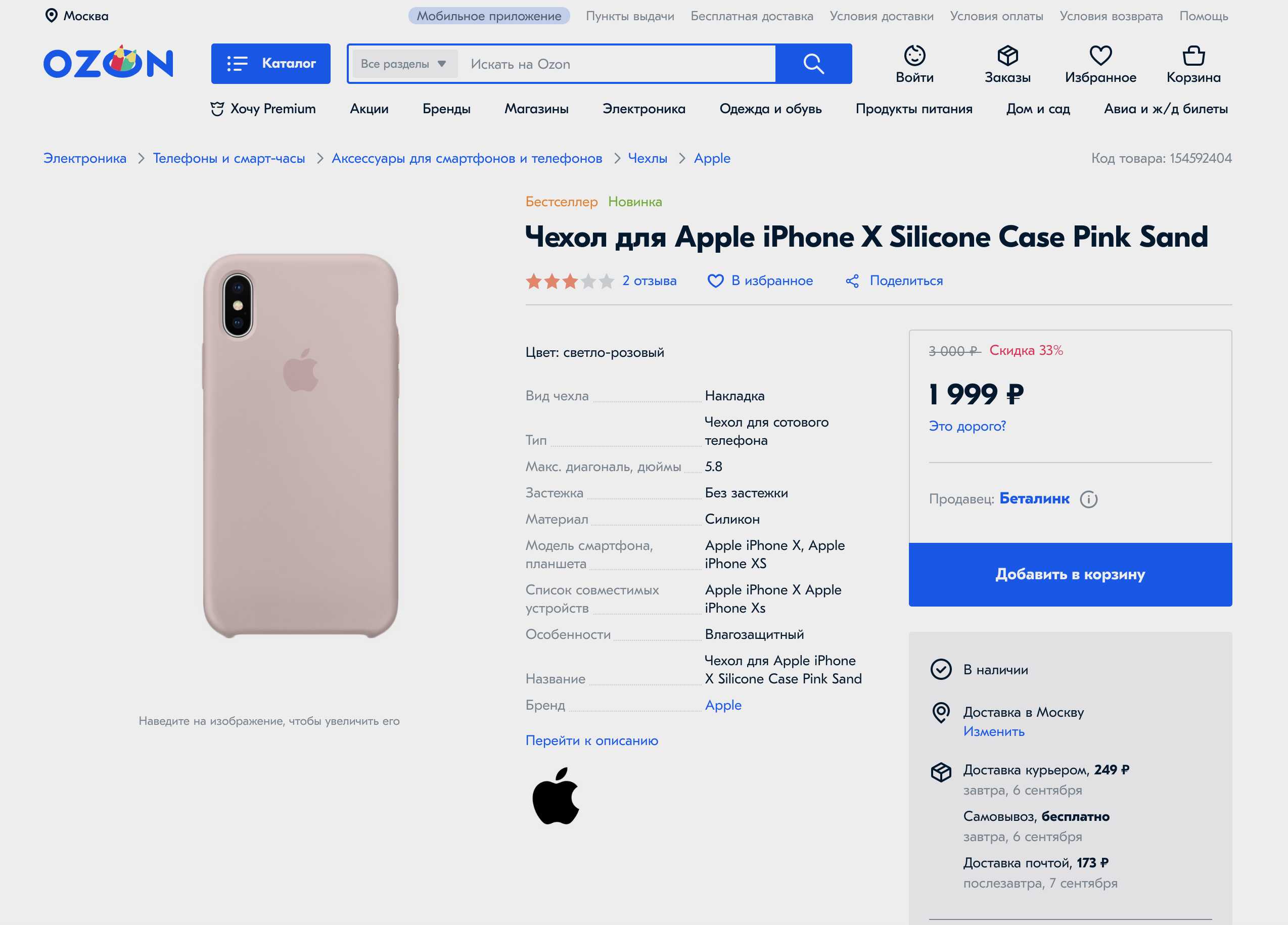 Третий пример. В поисках правды зашёл в карточку товара другого якобы оригинального чехла для iPhone. Снова «Беталинк», категория Apple, бренд и описание – тоже.