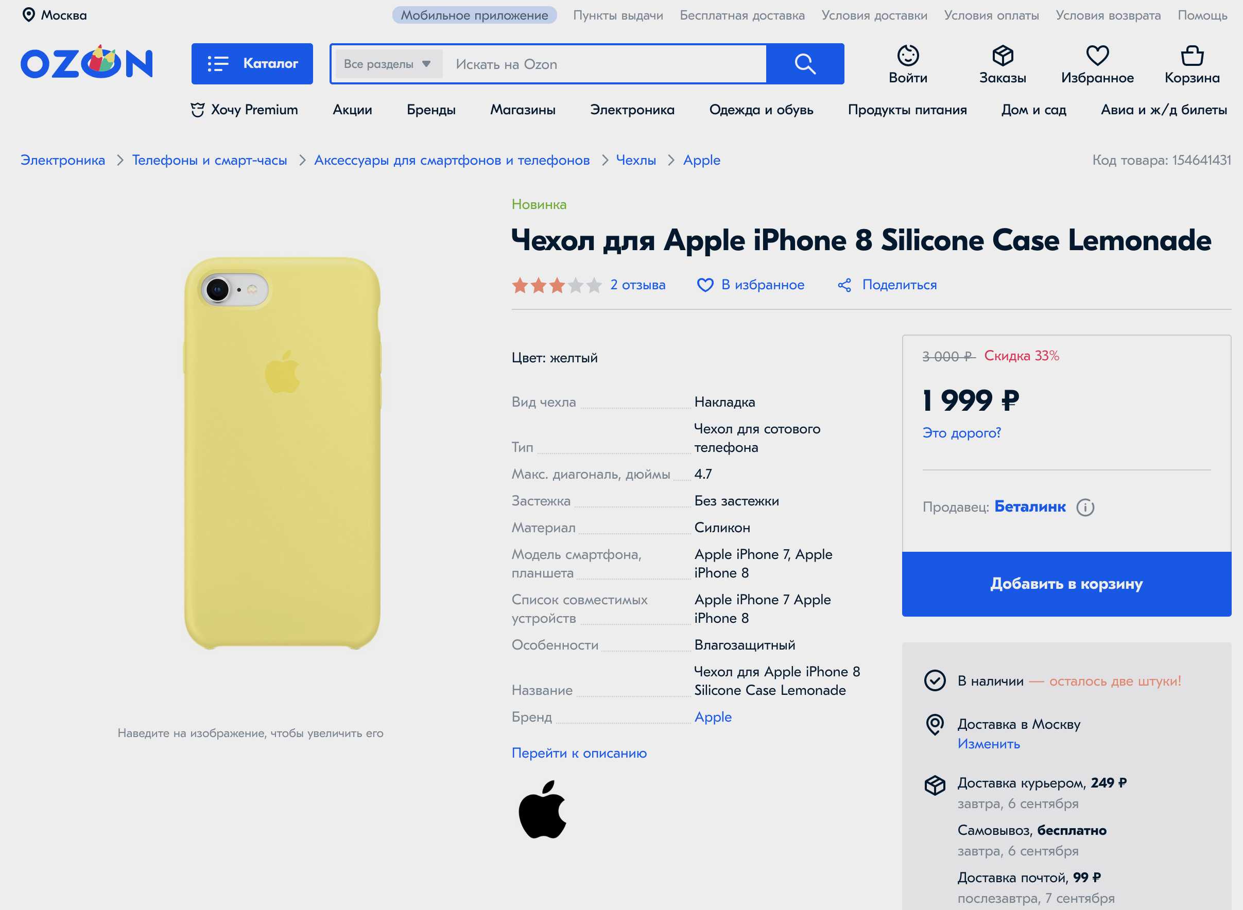 Первый пример. С него всё и началось. Два дня назад в подборке распродаж нашёл вроде бы оригинальный чехол для iPhone 8. Обычная цена – 3000 руб., но сейчас дают скидку, в итоге получается 1999 руб