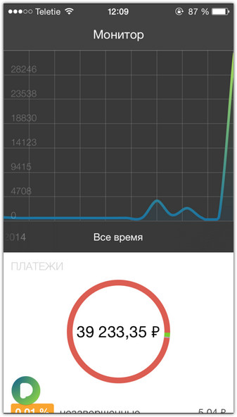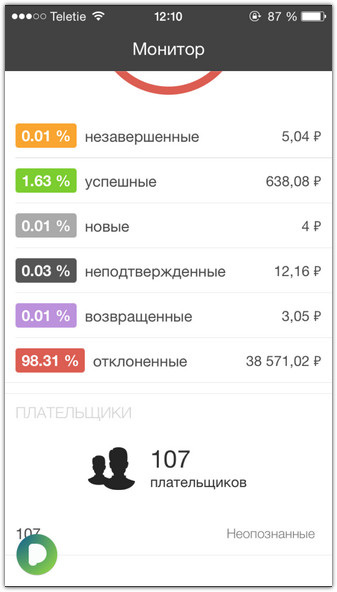 Главное окно называется «Монитор» и позволяет за несколько секунд оценить ситуацию по платежам при помощи графика и инфографики, расшифровка которой отображена ниже.