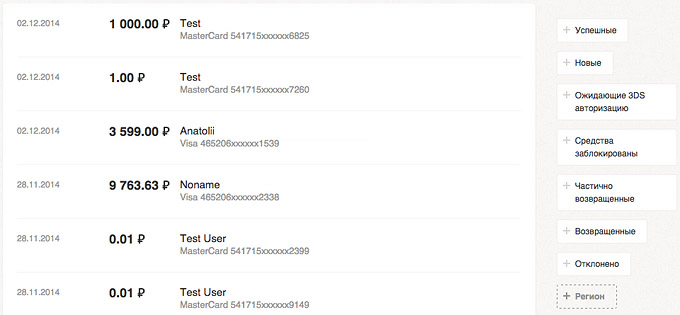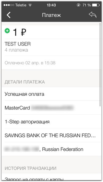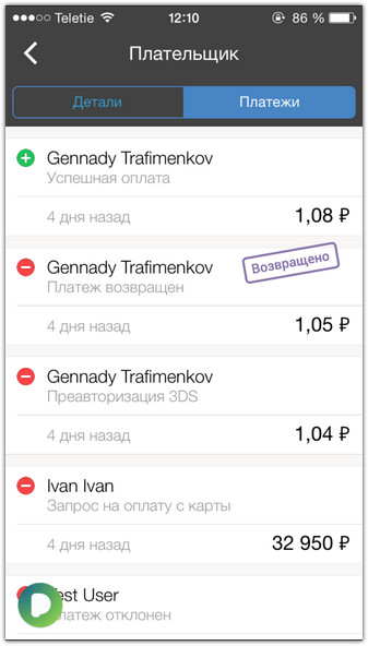 Здесь также можно кликнуть на любой платёж и получить максимум информации о нём – от имени банка до IP-адреса и истории операций.