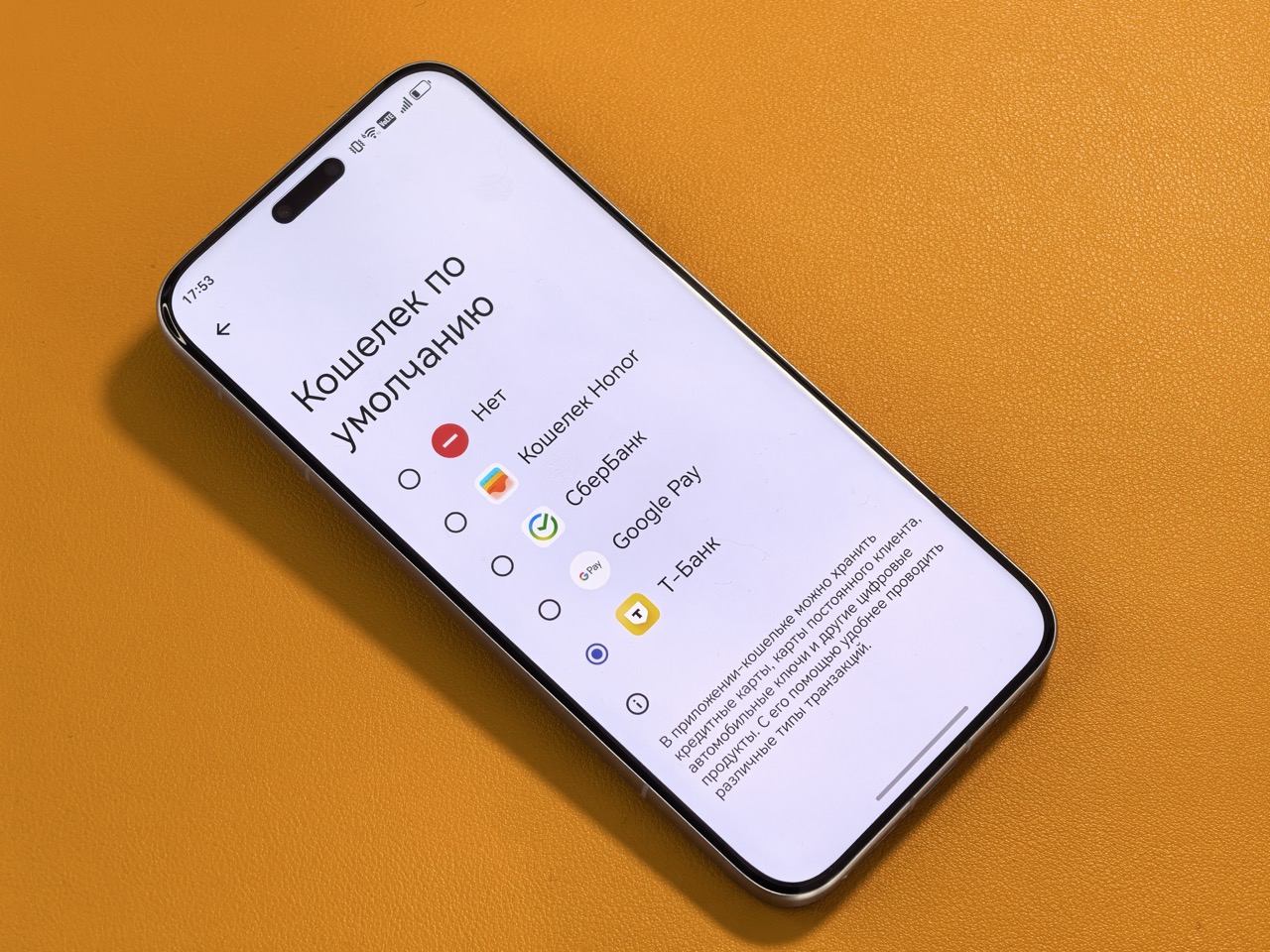 Для бесконтактной оплаты мне достаточно в настройках выбрать встроенные NFC-инструменты от того же Сбера или Т-Банка. При желании несколько карт можно завести с помощью сервиса MIR Pay.