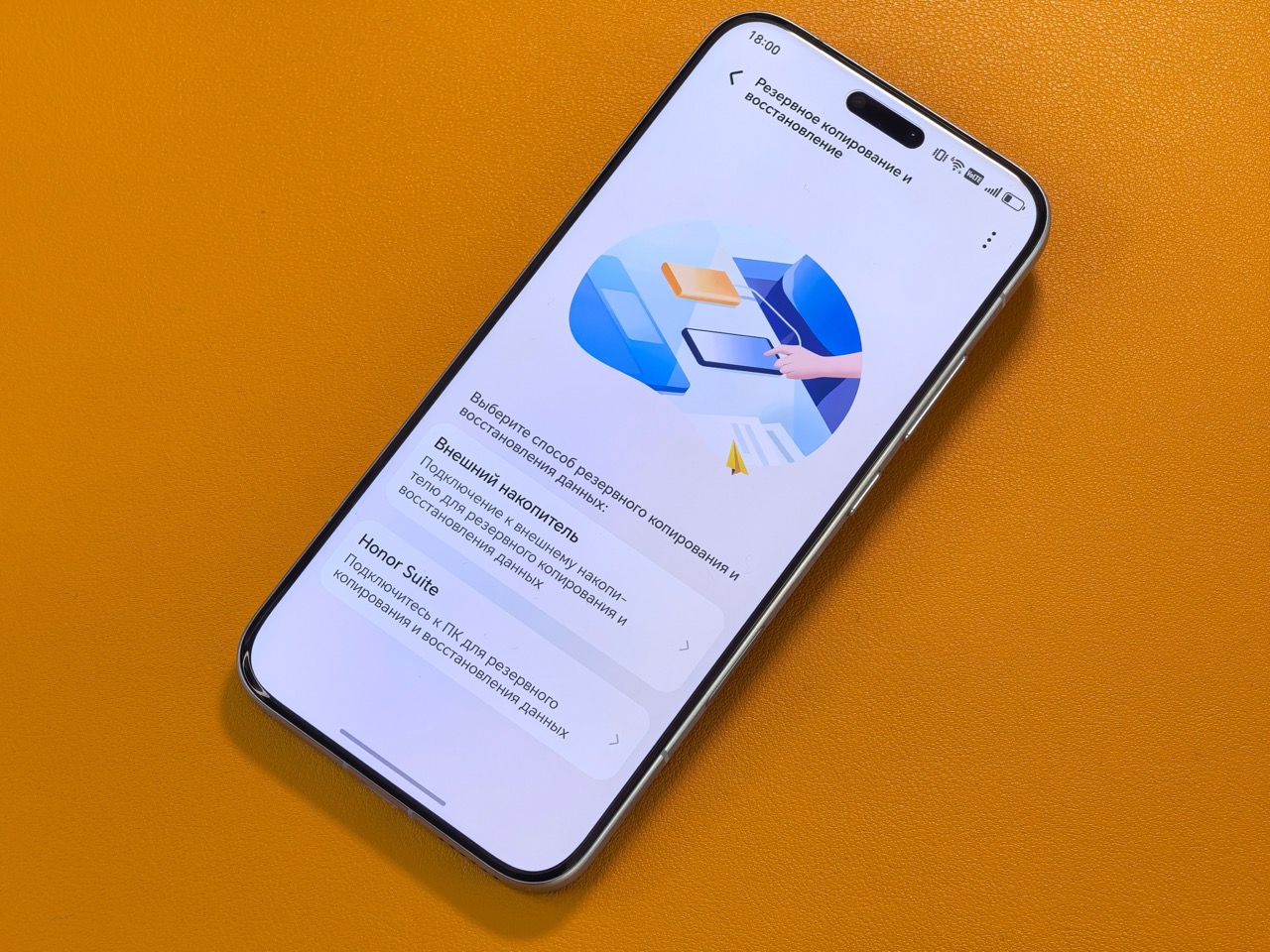 Со смартфоном на Android возможностей для бэкапа значительно больше. К примеру, встроенный инструмент резервного копирования в моем Honor Magic 8 Pro позволяет забэкапить все данные на флешку или любой другой съемный носитель.