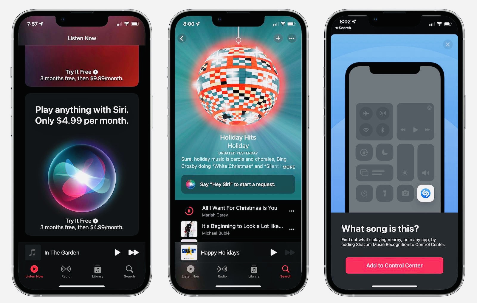 В приложении Apple Music специальный раздел «Просто спросите Siri…» предоставляет подписчикам предложения по прослушиванию. Также есть очередь недавно воспроизведенной музыки через Siri.