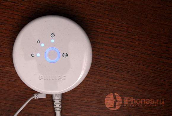 На первый взгляд кажется, что все это сложно. Какие-то контроллеры, протоколы, но заставить систему работать сможет любая домохозяйка, способная вкручивать лампочки и ставить программки из App Store на любимый «айпадик». В частности, подключаем круглую коробку с кнопкой к роутеру (да, маленькая сложность, нужен роутер или свитч со свободным портом), включаем в электросеть, вкручиваем лампочки в любые домашние осветительные приборы со стандартным гнездом и устанавливаем на любое iOS устройство бесплатное фирменное приложение Philips Hue. Все, осталось нажать на кнопку в центре контроллера, он определит все лампочки в радиусе своего действия (около 30 метров) и можно начинать пользоваться.