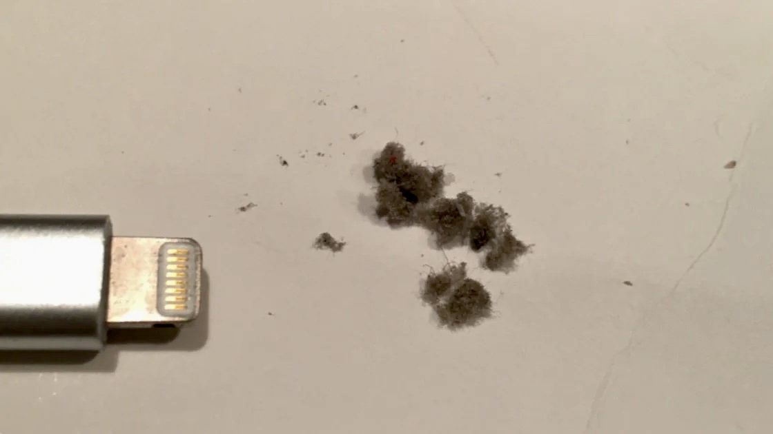 Понимаю, не так много людей страдает от этой проблемы, но для меня она критическая. Речь идёт о том, что в разъём Lightning забивается катастрофически много мусора. Объяснить процесс затрудняюсь, поскольку не знаю, как так выходит. iPhone всегда лежит либо на чистом столе, либо в кармане, где так же нет никакого мусора.