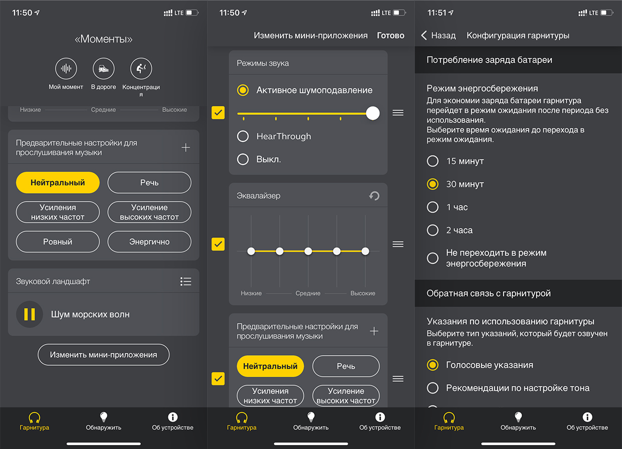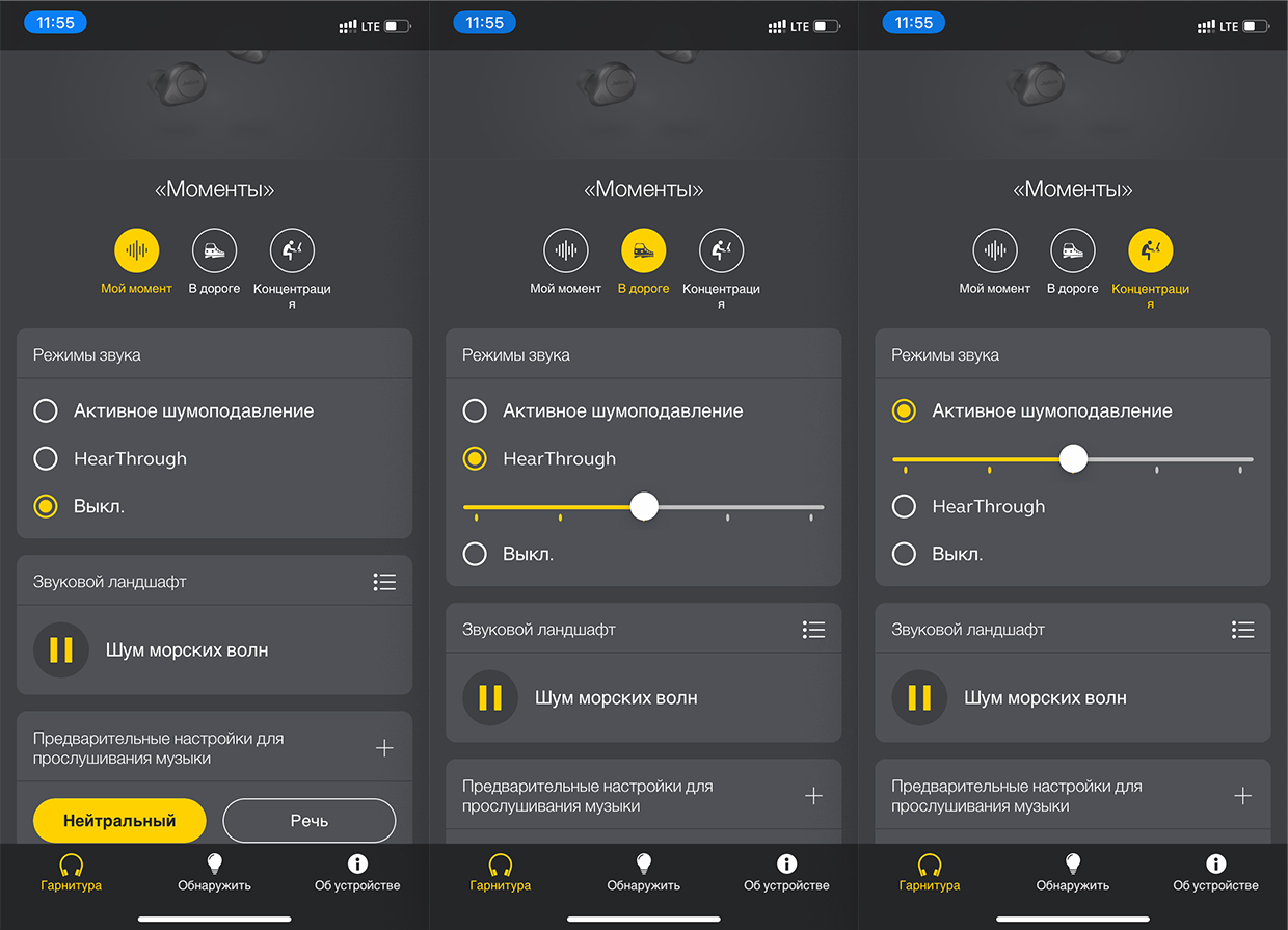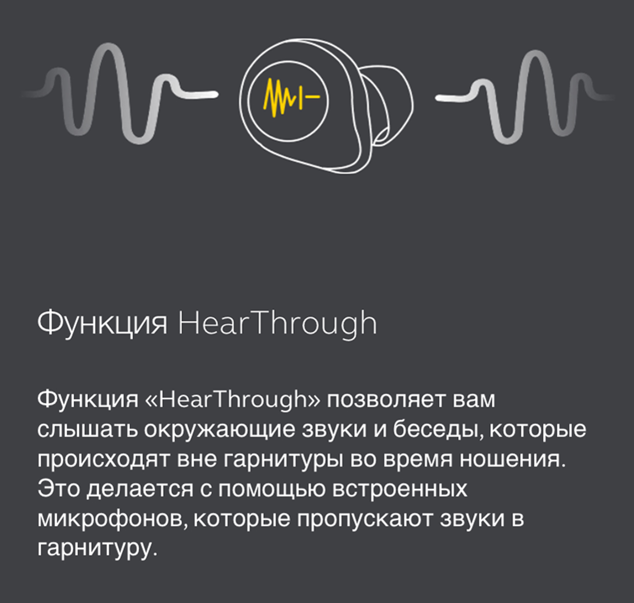 Помимо них дают точно настроить количество пропускаемоего или отсекаемого шума. Это полезно, если на улице слишком громко, но всё равно нужно слышать объявления. Или чтобы сосредоточиться на деле, краем уха понимая происходящее.