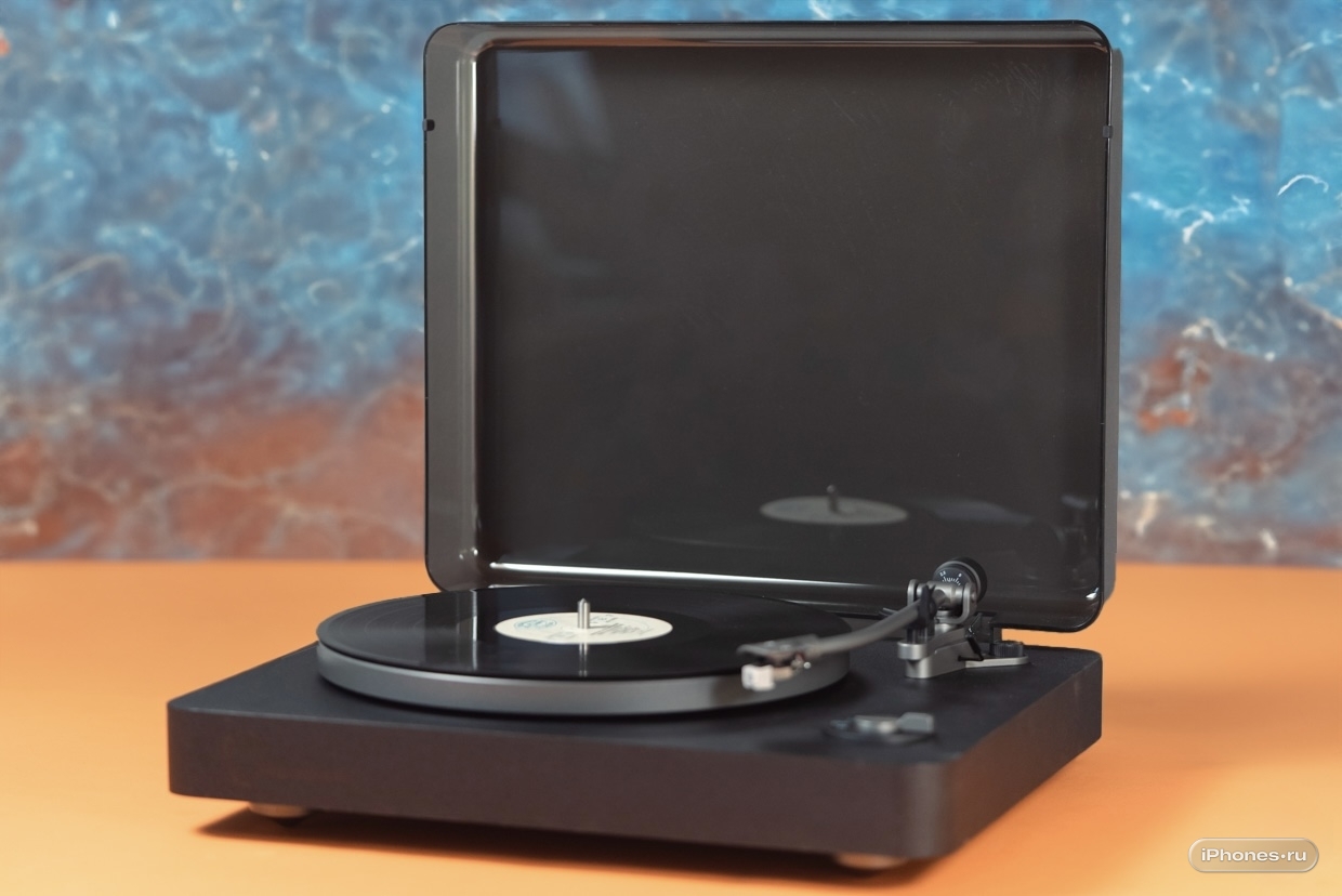 Проигрыватель винила здесь полуавтоматический, с автостопом. Для 12-дюймовых пластинок на задней панели есть аккуратный вырез.