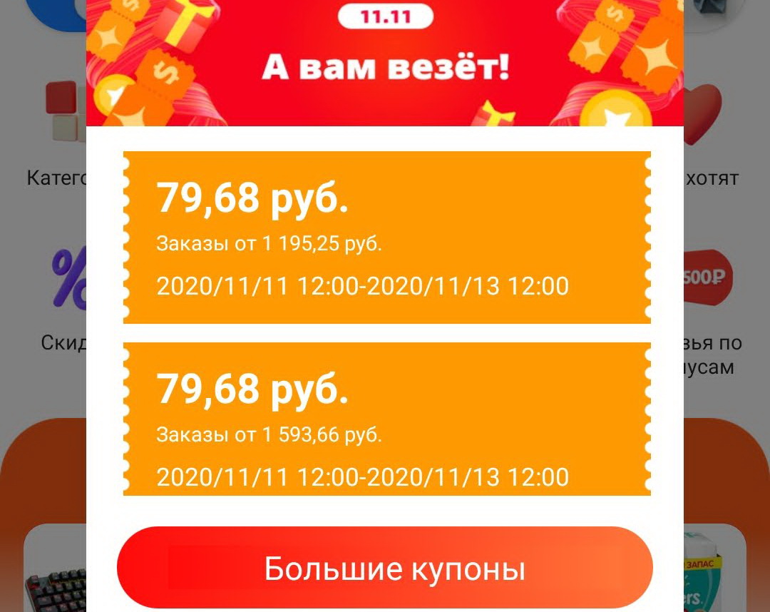 Промокоды Aliexpress для России, активные с 11:00 по Московскому времени 11 ноября 2020 года: