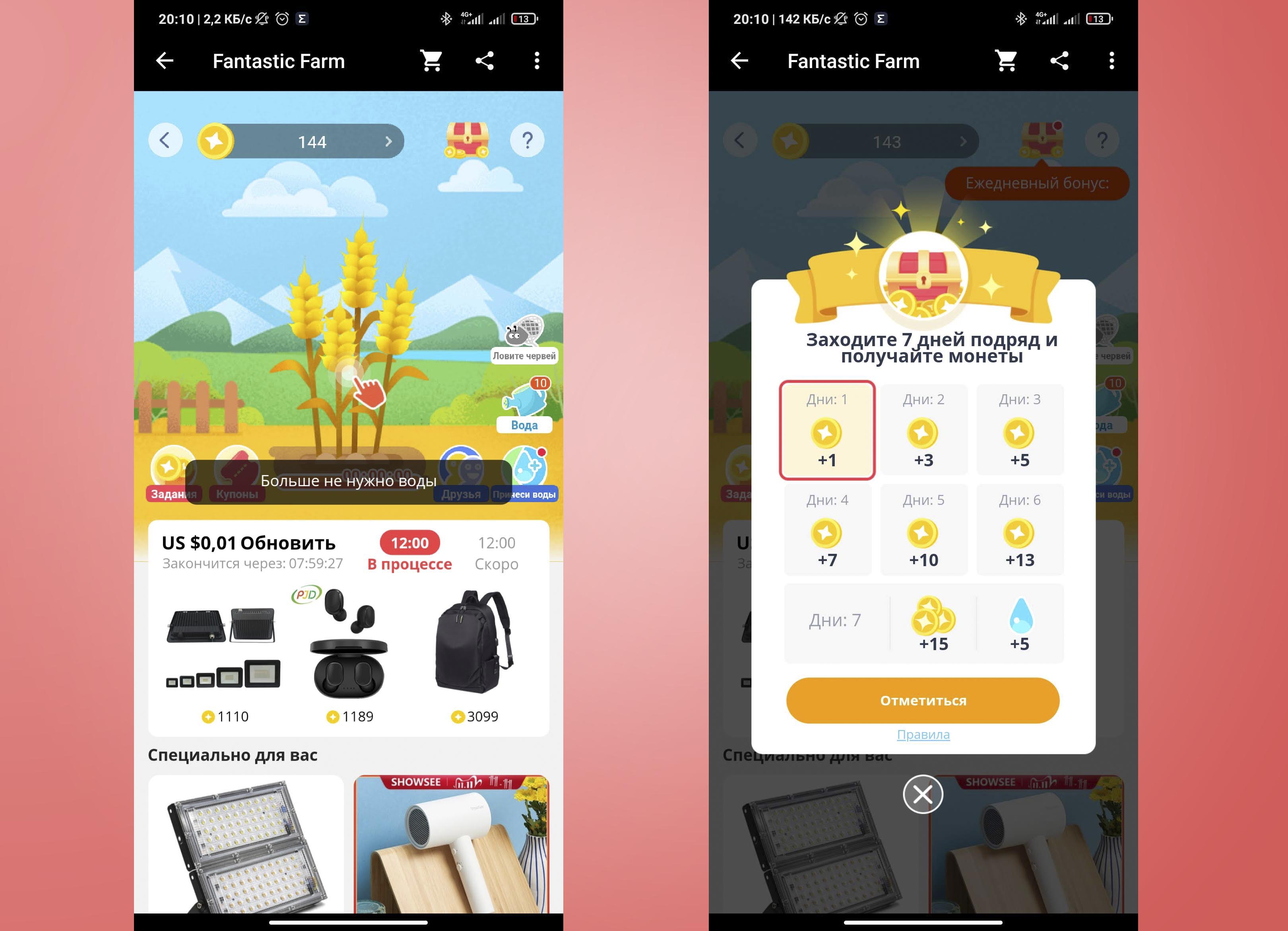 Цель игры — вырастить дерево, которое будет приносить монеты. Участие даёт купон на скидку 211 рублей для заказов от 1409 рублей.