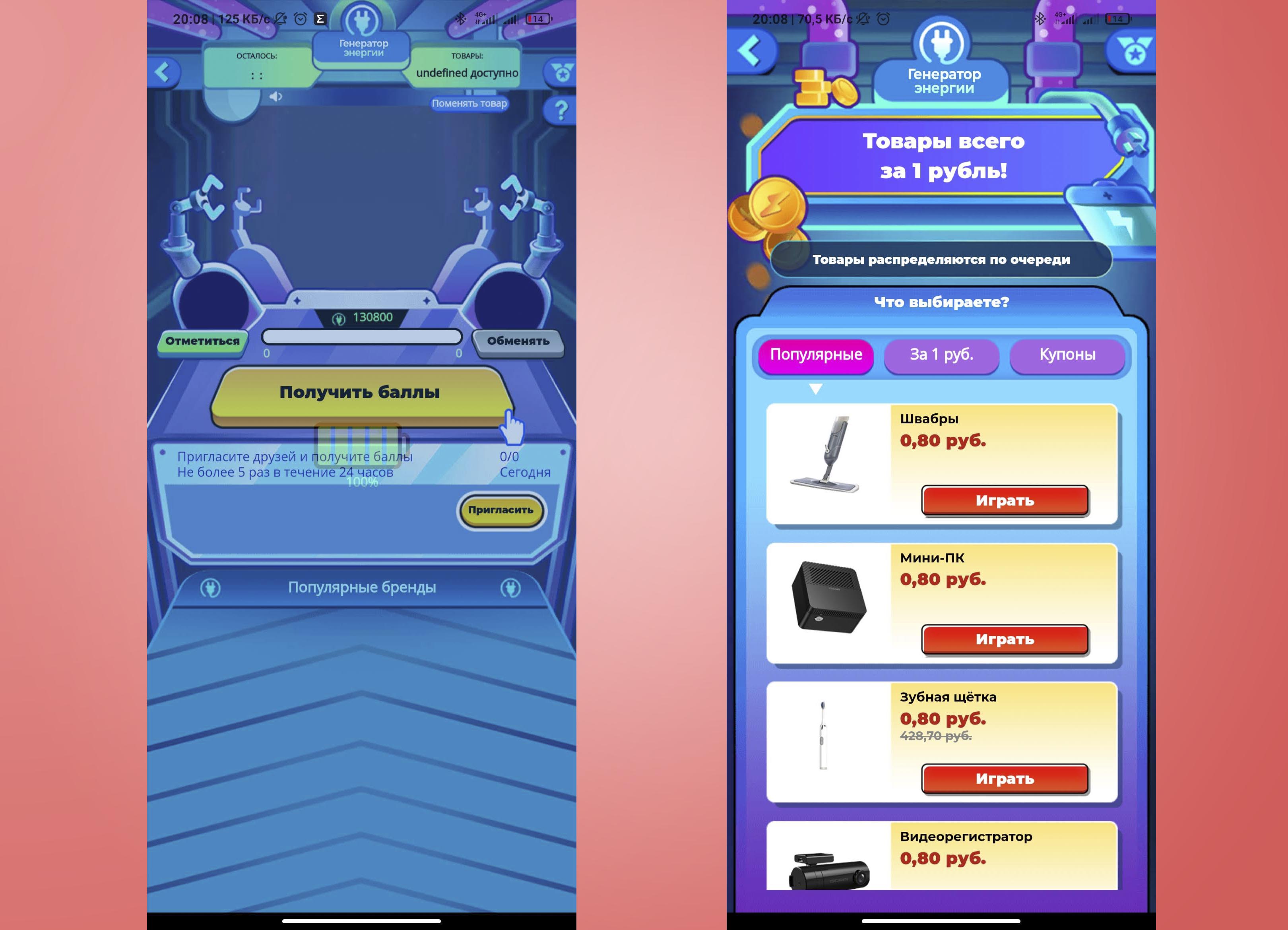 Удачная игра в «Генератор энергии», доступный из «Страны игр» позволит получить монеты либо выиграть товар за 1 рубль, выполняя ежедневные задания.