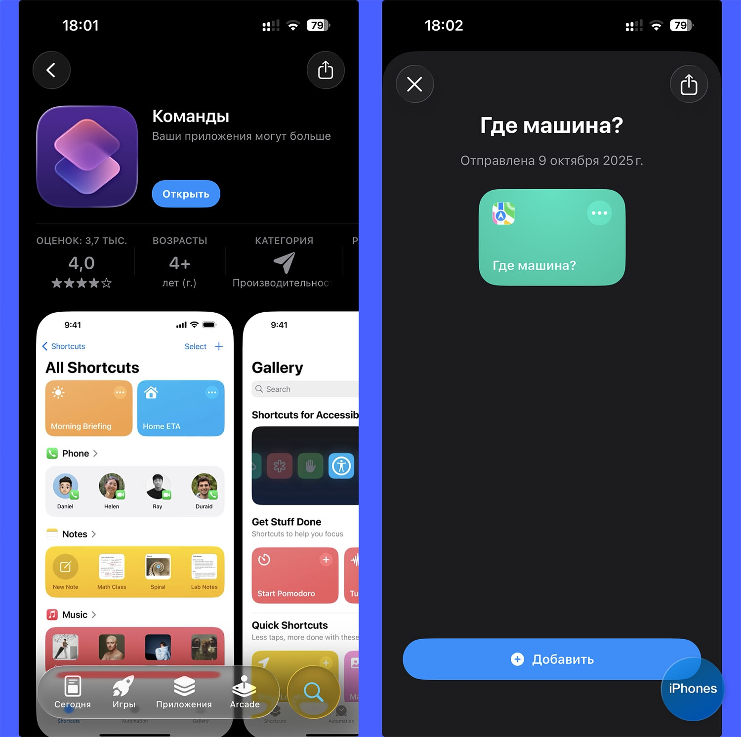 1. Скачайте бесплатное приложение Команды и стандартное приложение Карты (если удалили его с Айфона).