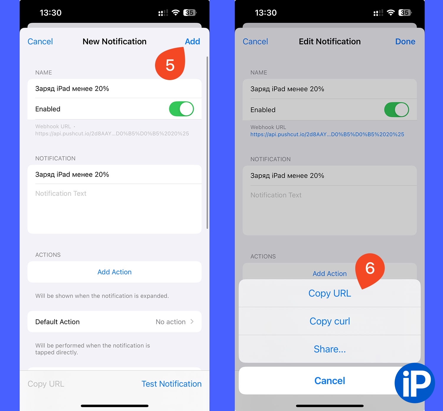 12. Вставьте ссылку, которую вы скопировали на iPhone на шаге №6 и сохраните автоматизацию.