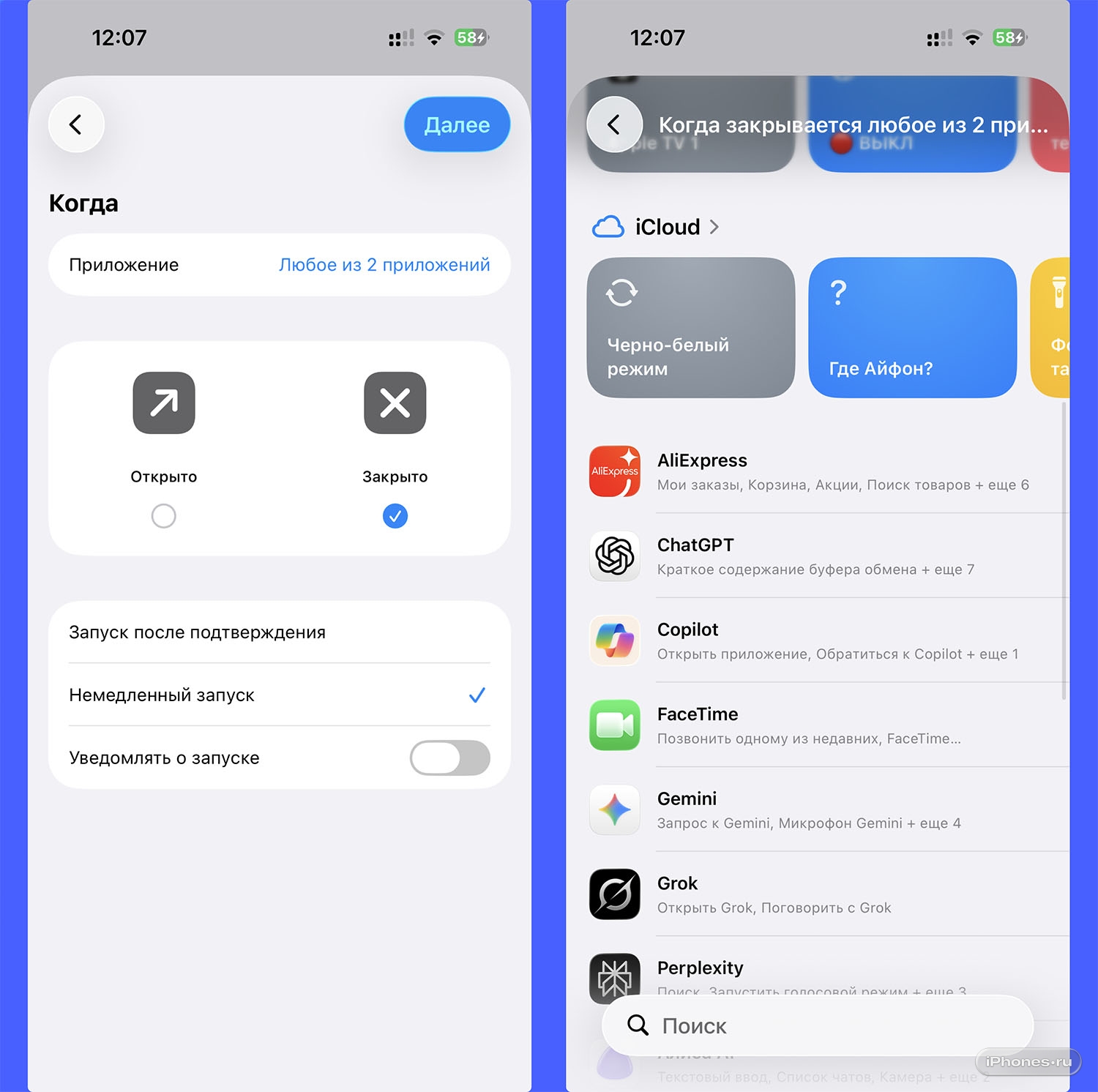 7. Создайте обратную автоматизацию. Условие Приложения, выберите те же программы, но отметьте опцию Закрыто.