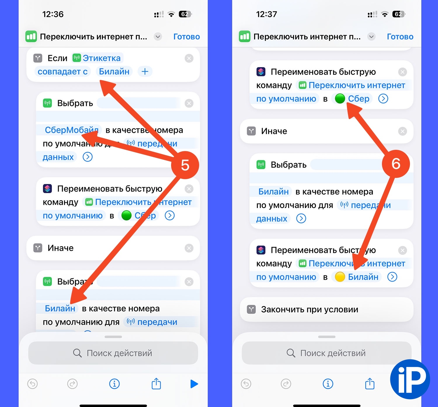 5. Ниже в настройках измените этикетку для своих SIM-карт. Это нужно сделать в двух блоках: Если и Иначе.