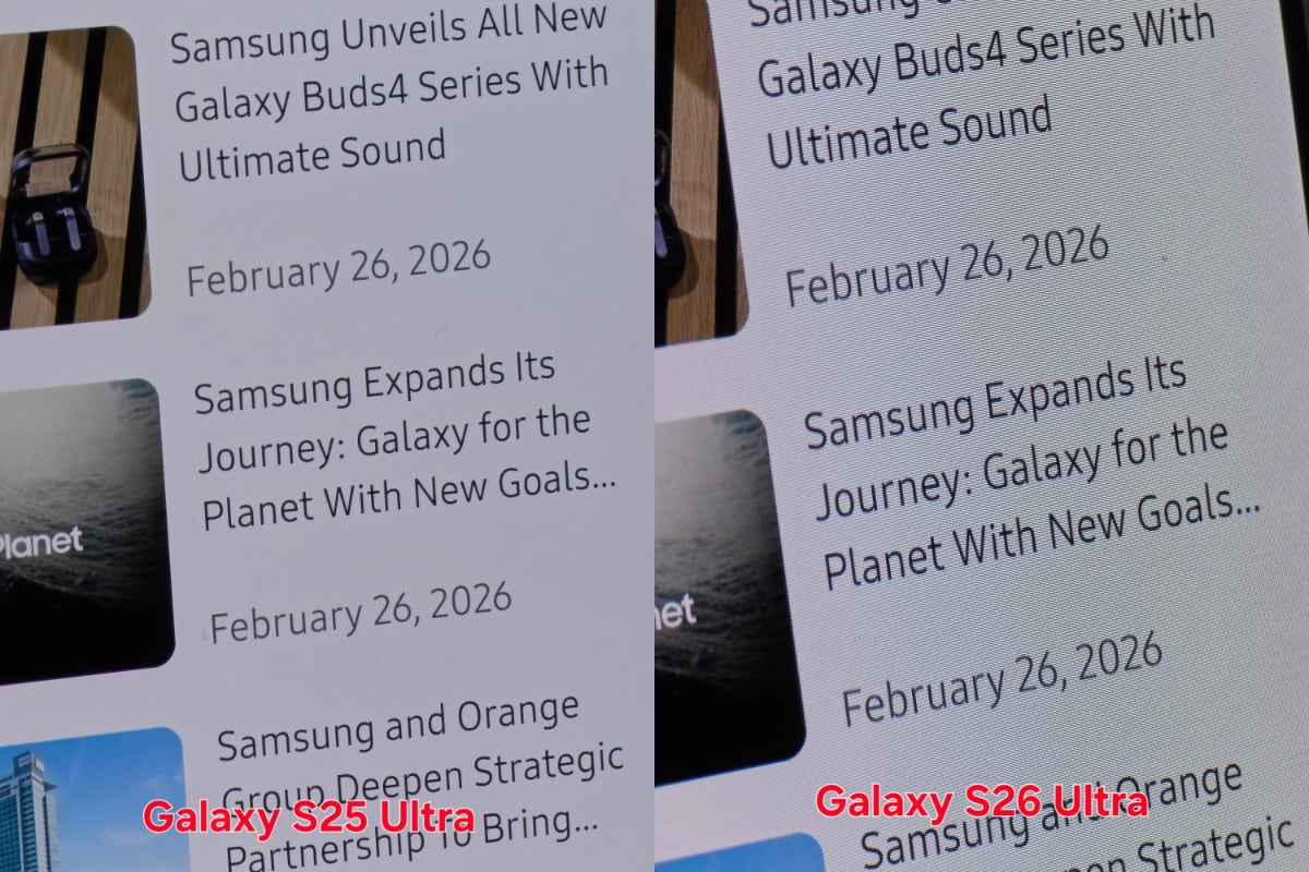 На обоих телефонах установлено разрешение 2K, а на Galaxy S26 Ultra выключена функция Privacy Display, которая затемняет некоторые участки дисплея.