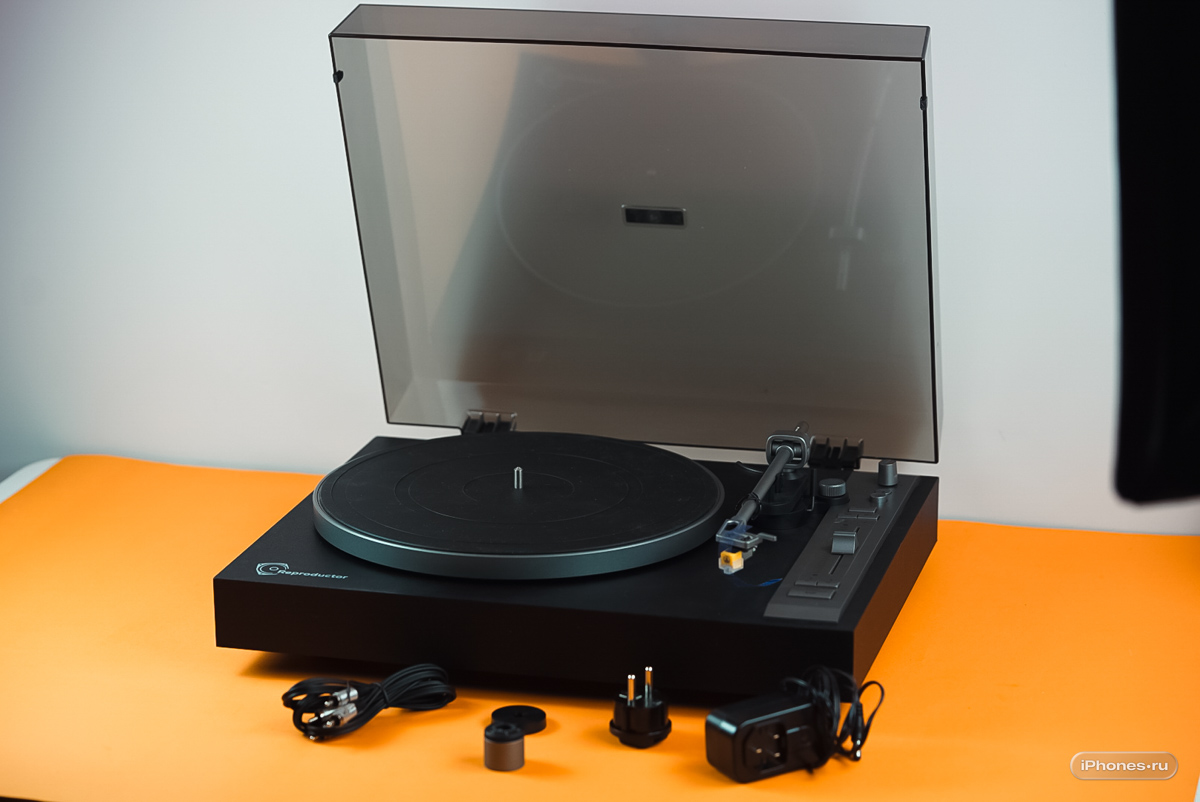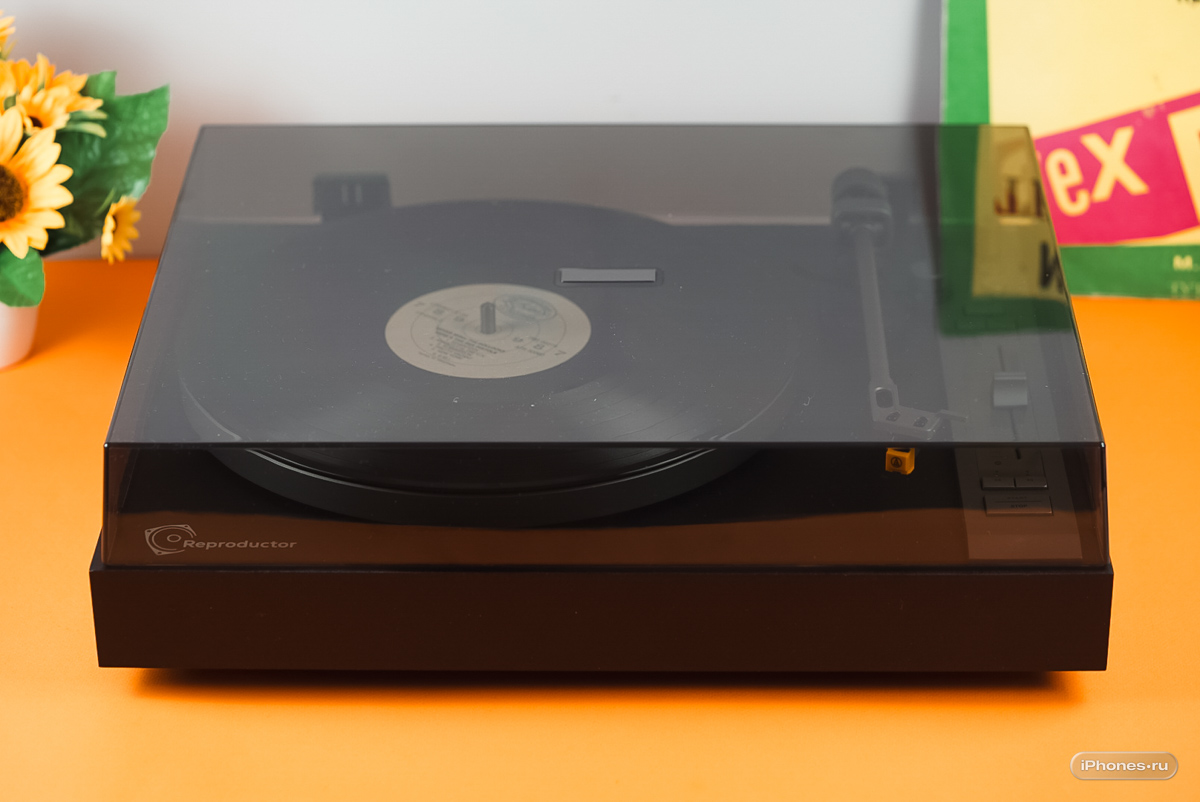 Проигрыватель представляет из себя минималистичный моноблок с крышкой.