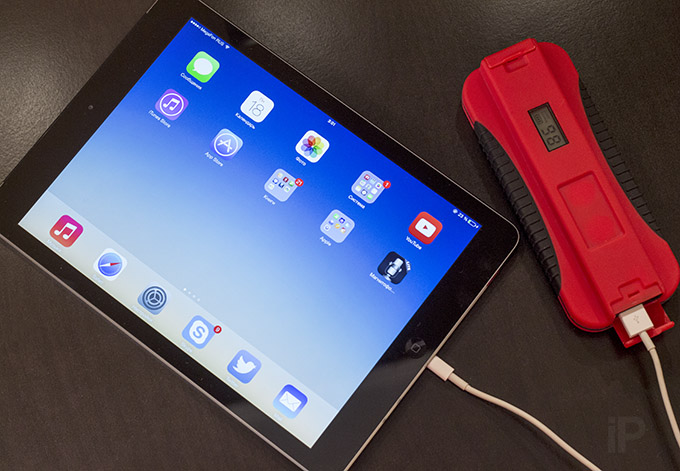 Прежде всего это именно аккумулятор, поэтому характеристики встроенных батарей не менее важны, чем особенности корпуса. Внутри стоят ячейки общей ёмкостью в 9000 мАч. Цифра может казаться расплывчатой, поэтому приведу примеры, накопившиеся за полгода регулярного использования в поездках. Powermonkey Extreme может с нуля зарядить iPhone 5/5s как минимум пять раз, прежде чем потребует собственной зарядки. iPad тоже в стороне не останется — одна практически полная зарядка вам обеспечена.