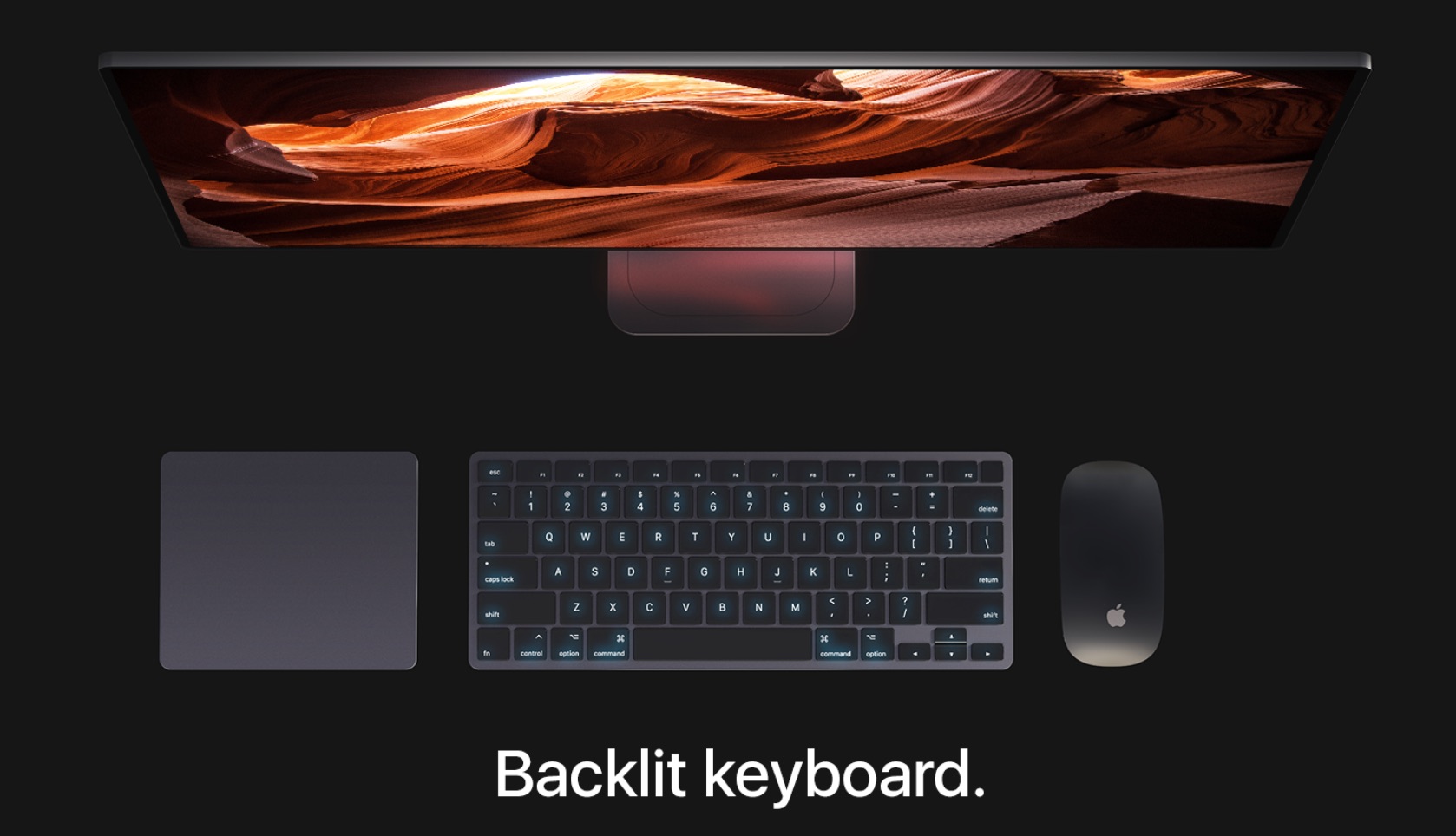 Также дизайнер переработал комплектные аксессуары. Клавиатура Magic Keyboard получила подсветку, а Magic Mouse беспроводную зарядку.