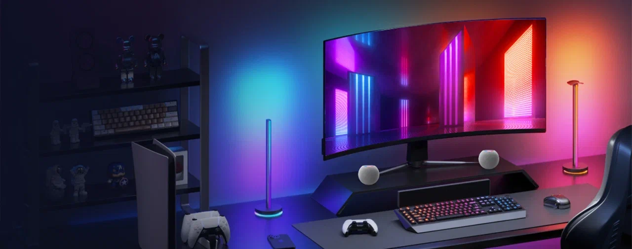 Управление происходит через отдельное приложение Yeelight, где можно создавать собственные сцены и менять атмосферу рабочего места под настроение. Совместимость с Matter для приложений и голосового управления. А благодаря минималистичной форме легко вписываются и в геймерский сетап, и в более спокойный домашний интерьер.