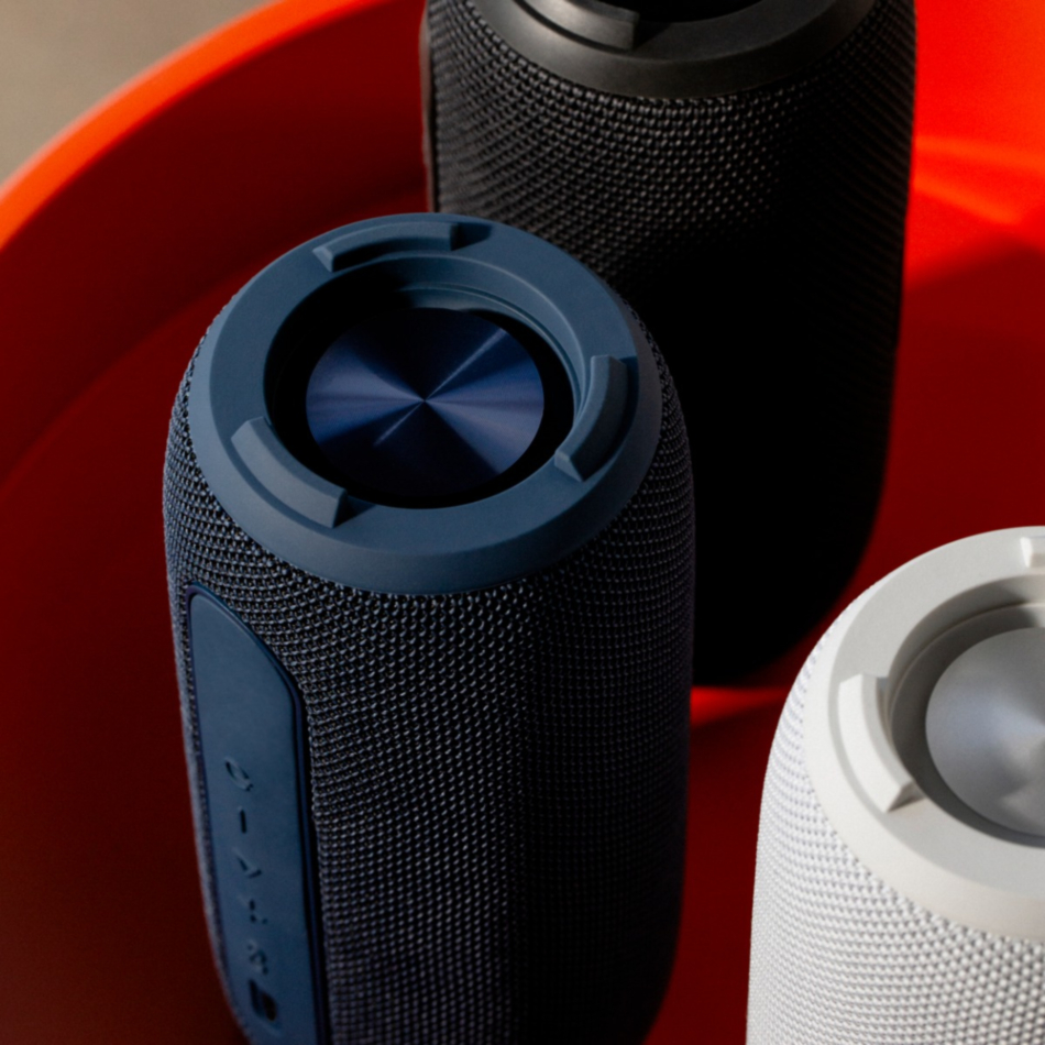 Чаще всего колонка просто лежит без дела и работает сама по себе. Sudio F5 сделана с другой целью: она должна быть рядом постоянно, как наушники или смартфон. Компактный цилиндрический корпус легко бросить в рюкзак, а скандинавский дизайн не выглядит как типичная тусовочня акустика. Есть три цвета на выбор: чёрный, белый и тёмно-синий, и все они смотрятся скорее как элемент интерьера, чем техника.