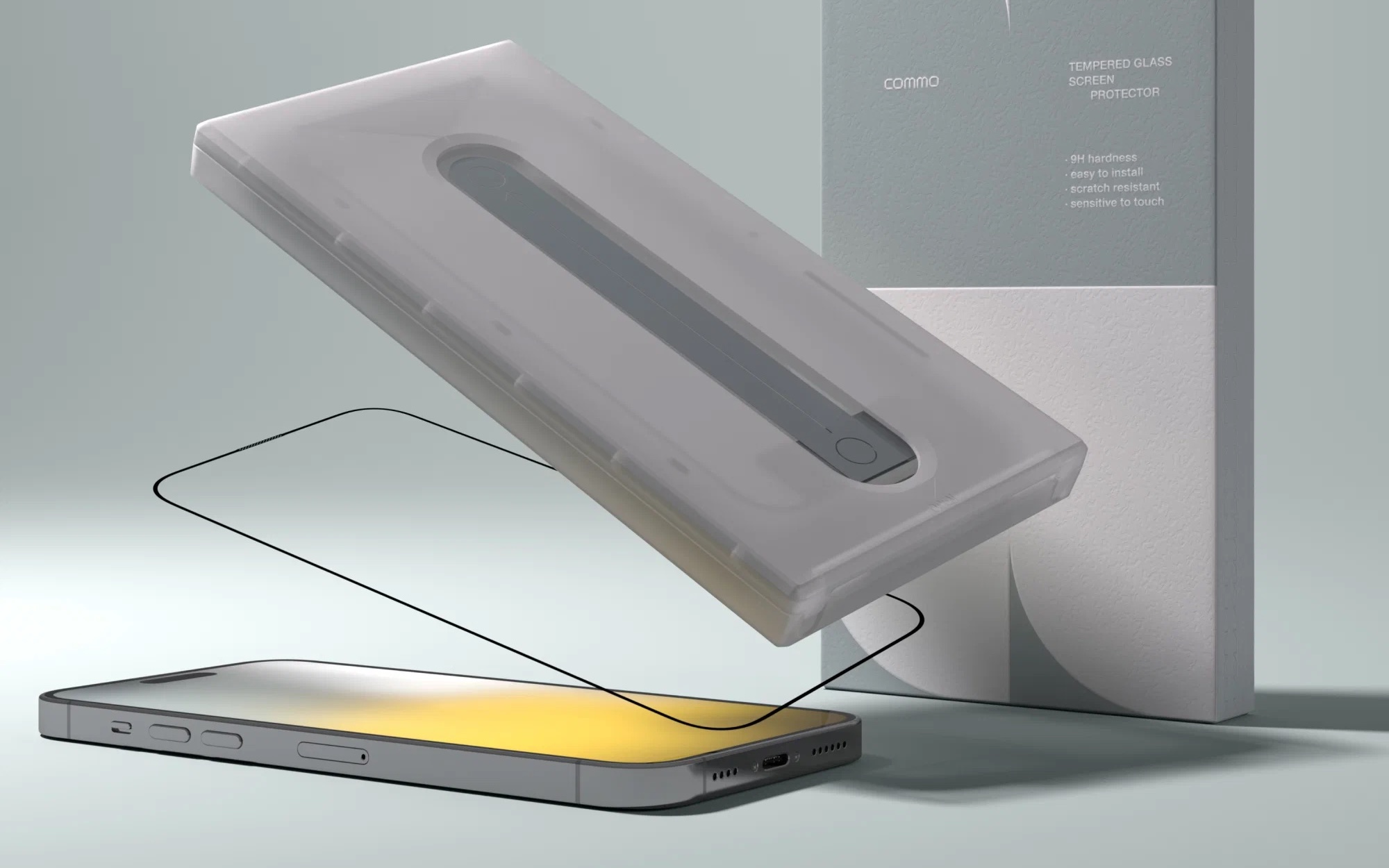 Технические характеристики Commo включают высокую степень прозрачности и тонкий профиль, что позволяет стеклу оставаться практически незаметным на экране.