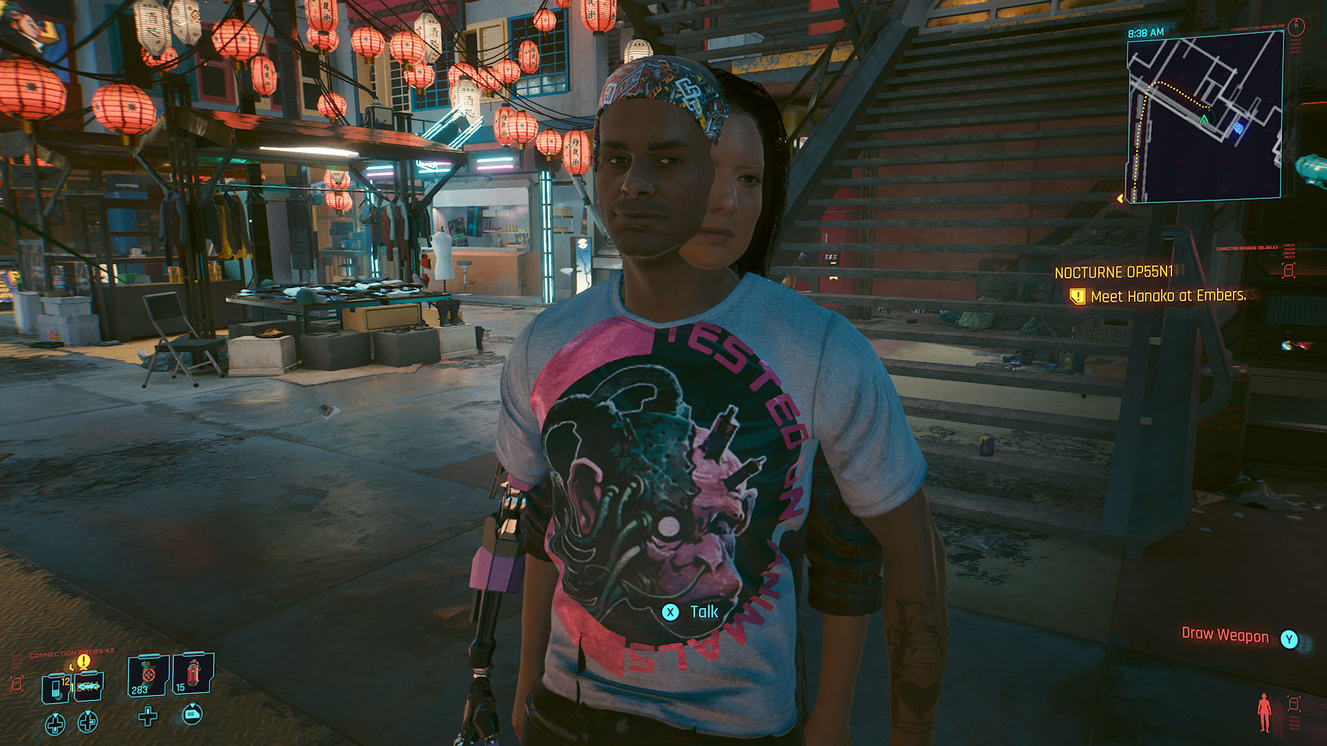 Ну и правильно. Зачем опираться на барную стойку или говорить лицом к лицу, когда ты в киберпанке.