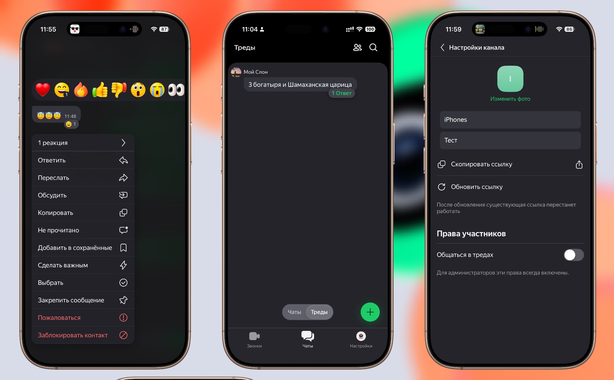 ◊ Треды. Можно зажать любое сообщение и нажать Обсудить, после чего откроется отдельная ветка обсуждения. Примерно похоже на Twitter (X).