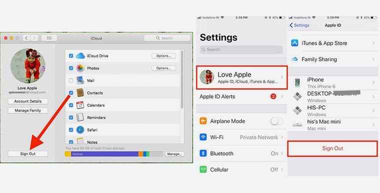 4. Перелогиньтесь в iCloud на каждом устройстве.
