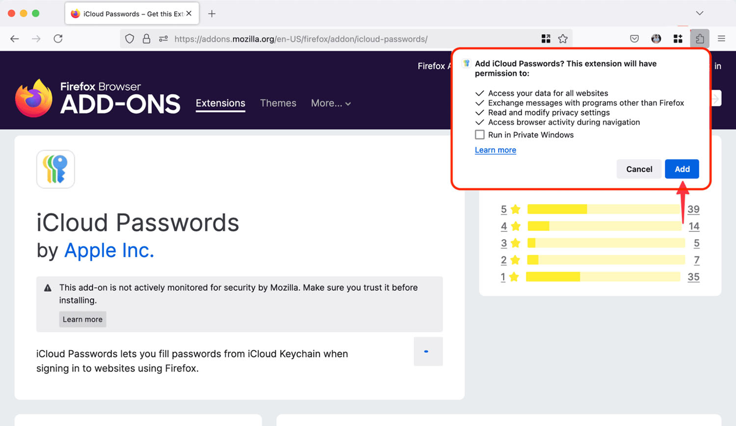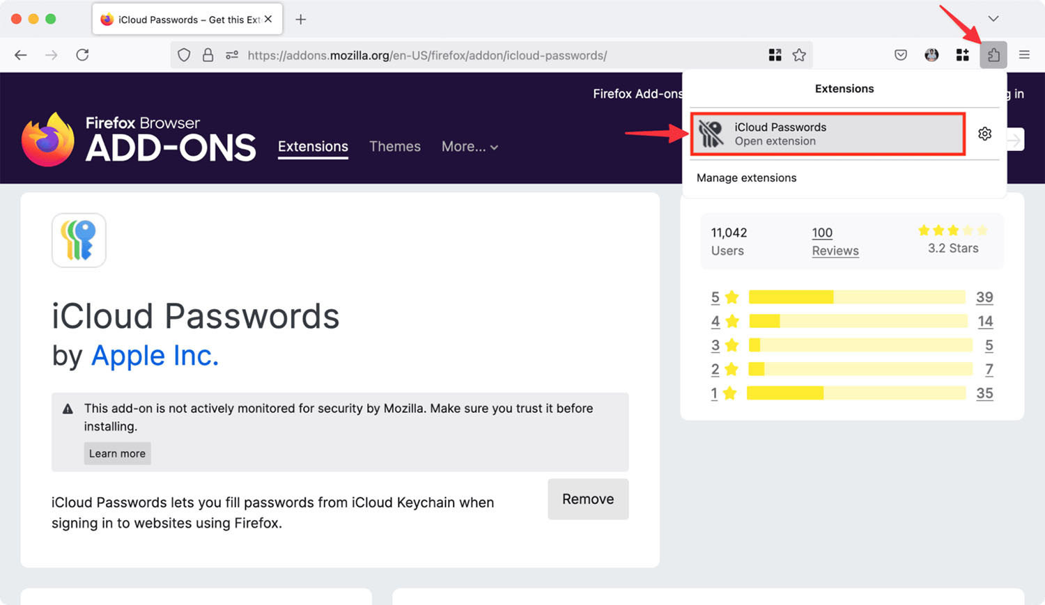 1. Загрузите расширение iCloud Passwords из магазина дополнений Firefox.