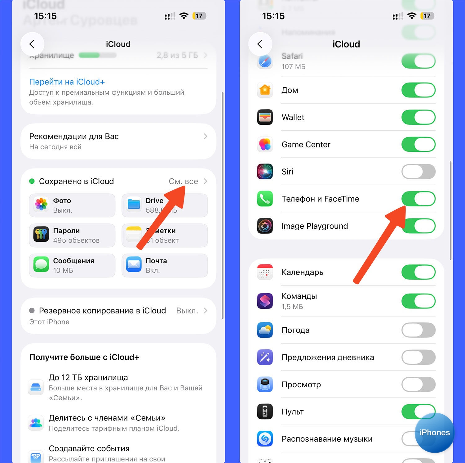 Как отключить дублирование звонков на все устройства. Для этого перейдите в Настройки – Учетная запись Apple – iCloud, нажмите См. все, чтобы открыть все параметры. Найдите и отключите опцию Телефон и FaceTime.