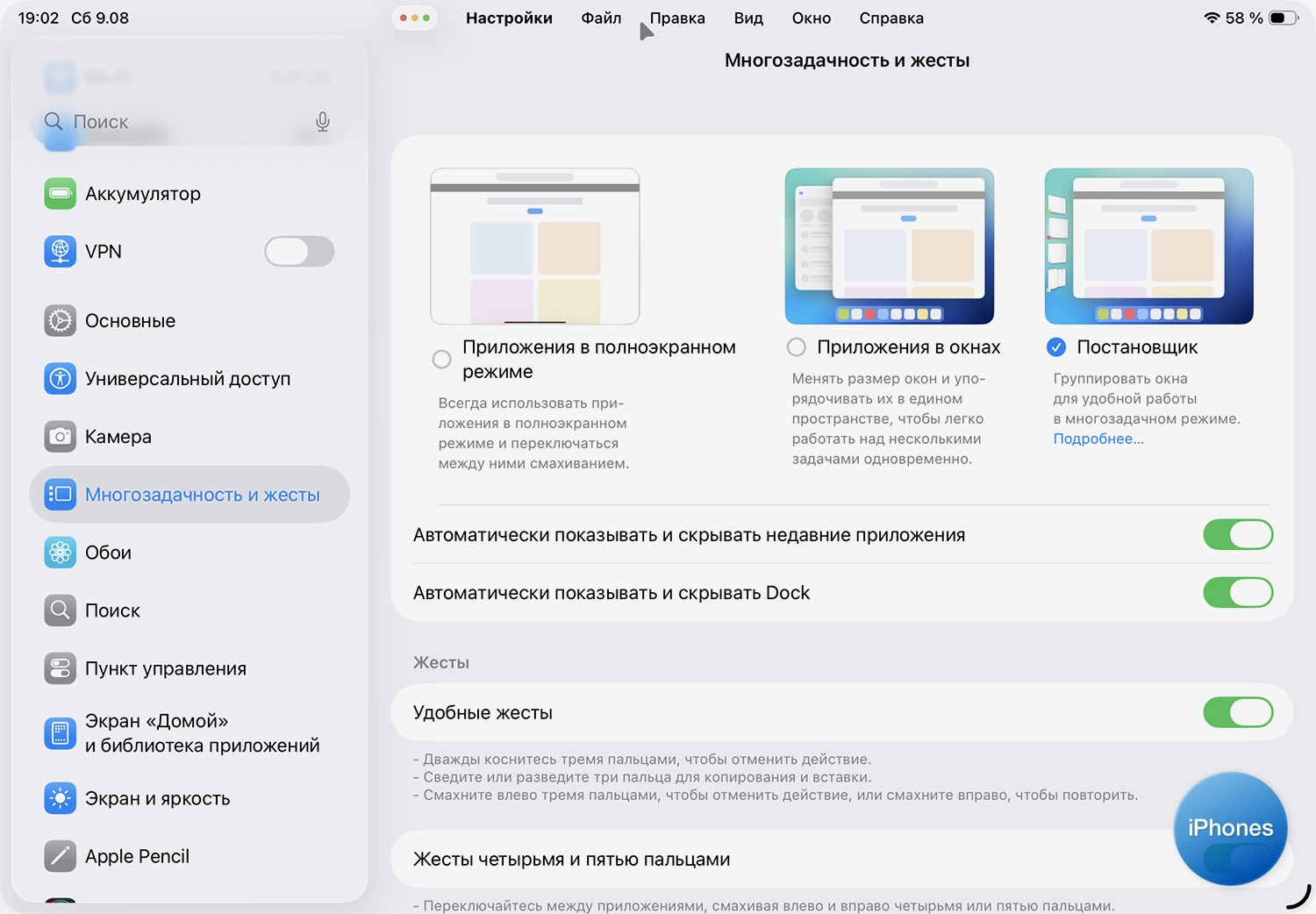 Обновил iPad до iPadOS 26, но не пойму, как включить строку меню с частыми действиями для приложений.