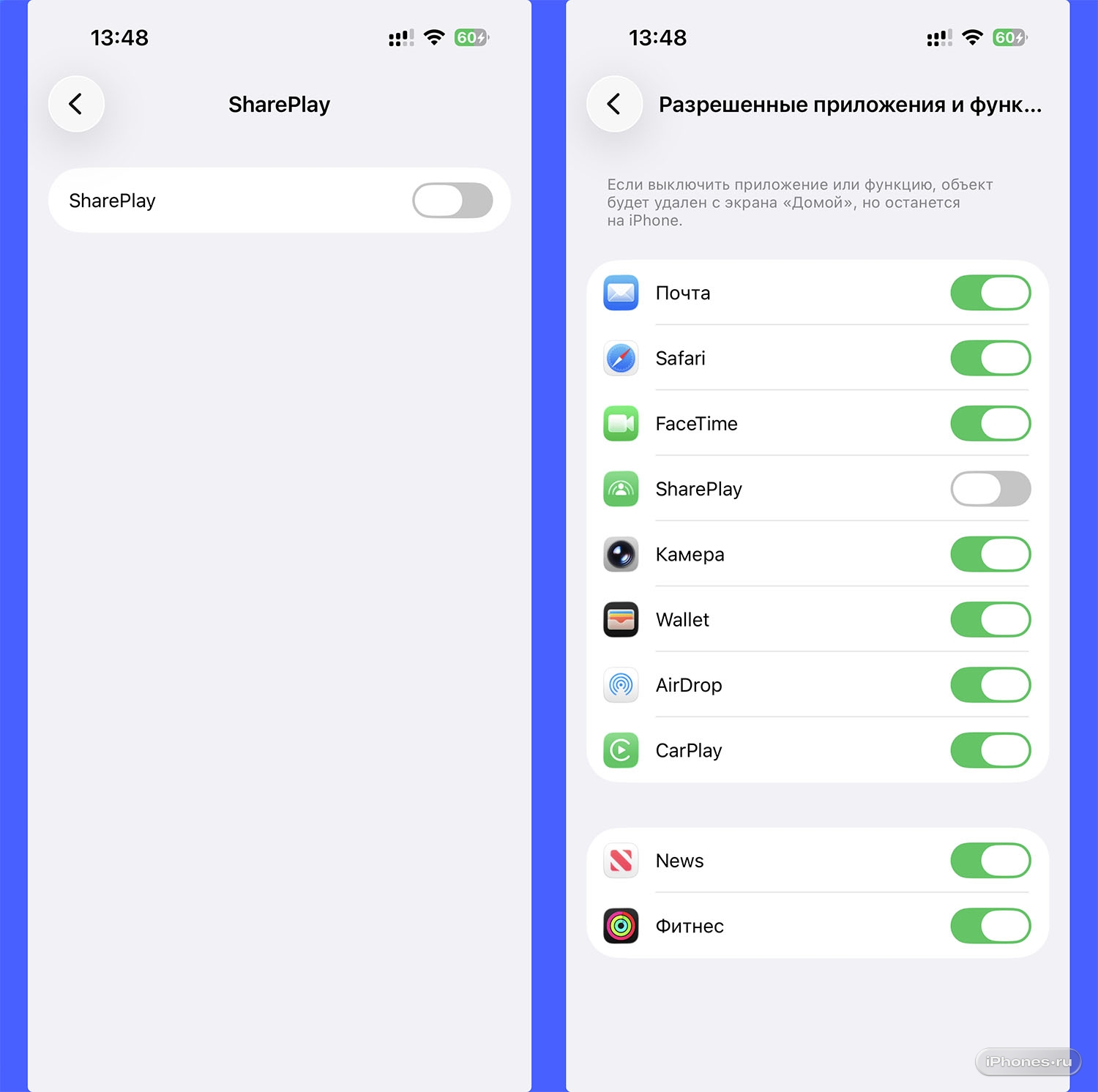 Если не используете SharePlay, опцию можно заблокировать на уровне системы.