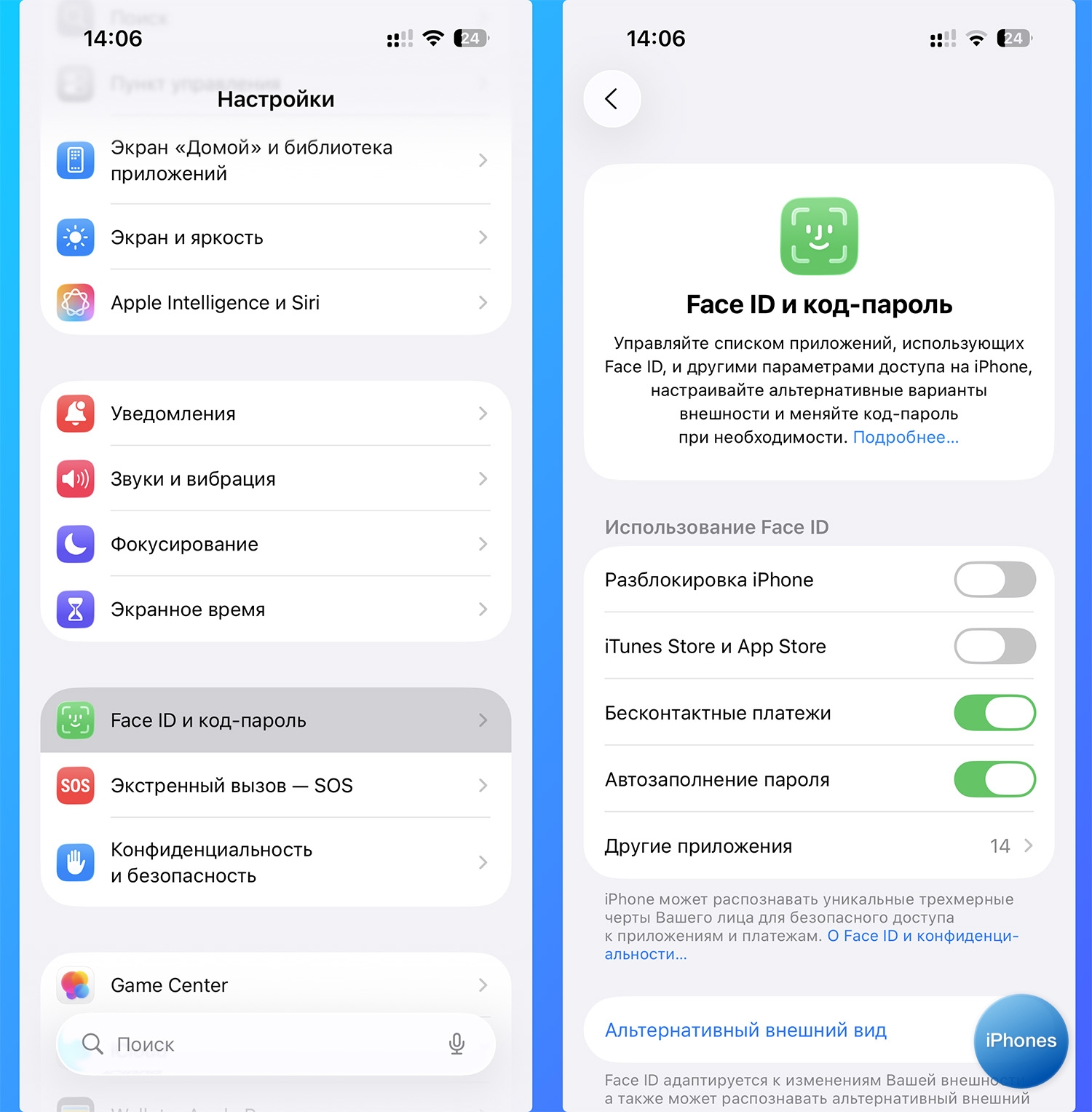 1. Перейдите в Настройки – Face ID/Touch ID и код-пароль.