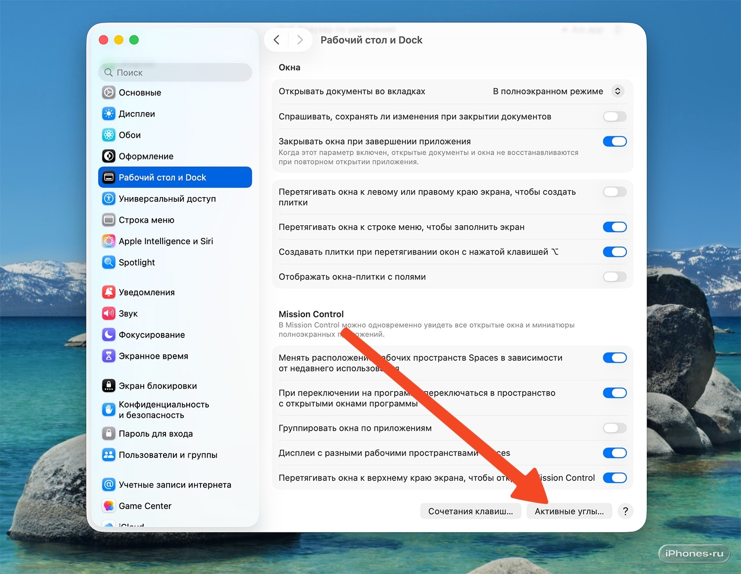 1. Перейдите в Системные настройки – Рабочий стол и Dock.