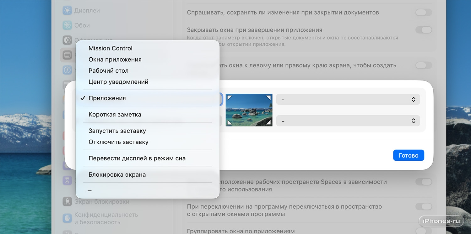 3. Выберите угол, при наведении в который хотите вызывать панель с программами.