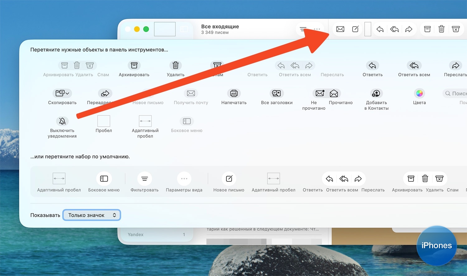Чтобы делать действие быстрее, можно добавить соответствующую кнопку на панель инструментов приложения. Для этого откройте контекстное меню панели, нажмите Настроить и добавьте кнопку с колокольчиком.